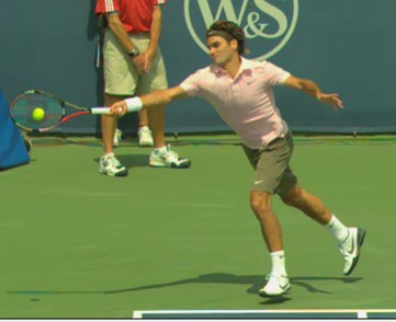 The next moment is when your racket face makes contact with the return. This combined with keeping your head still at contact is the most critical element in ensuring solid contact. Three of the greatest players in tennis history, Federer, Bjorn Borg and Chris Evert, were/are masters at watching the ball and keeping their head still at contact.