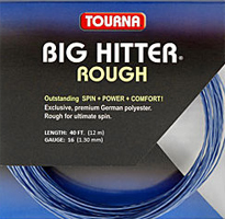 First, I recommend open patterns and stiffer frames, like Babolats with 16 x 19 patterns. Now string the mains with Tourna Big Hitter Blue Rough Twisted. Cross this with Luxilon Big Banger original rough.