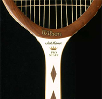 My next move was way up, to a Jack Kramer Prostaff frame with brown diamonds on the throat, and Leoina nylon string. The Leoina didn't last long, and it didn't hold tension very well either.