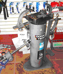 Bill Strei, at Plaza Tennis strung that first gut job for me, using a 1950's Oliver drop weight machine, which he still uses, three shop incarnations later. The older two point mounting machines like Bill allows him to actually "elongate" frames, although most players and many stringers aren't even aware of this effect. This slight change in the shape of the frame affects power and the shape of the sweet spot.