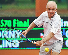 We take that dream to the tennis courts and give it our best shot. What draws us to the television to watch these elder heroes is the same that drives us to compete late into our lives. The level may be world's apart, but I dare say for some the intensity level can be the same as the juniors, the collegians, or even, yes, the pros.