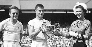 But Gonzalez didn't make it past the third round of play. He was eliminated by Australian Geoff Brown. Schroeder, on the other hand, battled his way to the final where he beat Drobny for the Wimbledon title. Gonzalez did get a measure of revenge when he and Parker beat Schroeder and Mulloy for that year's Wimbledon doubles title.