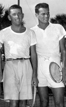 "Acting on the maxim, 'If you can't beat them, join them," I straightaway invited Frankie Parker to play doubles with me and he accepted. Why not? He seemed a certainty for the singles and now stood a great chance of playing right through the match.