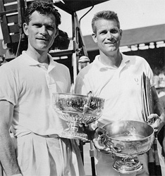 I walked over to Patty and we congratulated each other before shaking hands across the net with our opponents: Lew Hoad and Neale Fraser of Australia. This ritual of victory was not new to Patty--he had won the singles here in 1950 but the moment was none the less intoxicating for him.