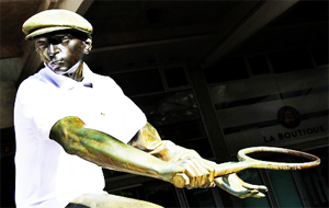 Through 1933, the so-called Four Musketeers --Rene Lacoste, Henri Cochet, Jean Borotra, Jacques Brugnon --were unbeatable in Davis Cup .There's a statue of each at the four corners of the main square at Roland Garros. The Lacoste statue in particular is a not-so-crowded and easily visible place to meet, should you happen to need a rendezvous point on the grounds.