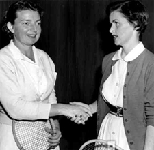 Barbara Scofield (right) in her prime, with Australian player Thelma Long.