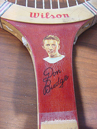 His only competitive tennis event during the war was in 1944 when he was given a leave to play the National Singles. He only had one racket - the one issued me by the Junior Davis Cup team. When it broke he had to borrow a racket from another player, a Wilson Don Budge autograph.