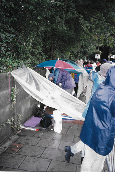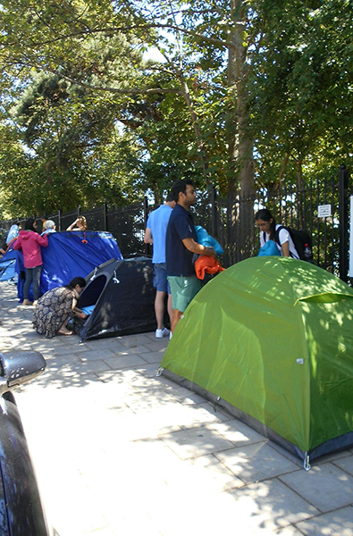 They were kitted out with camping gear that readied them for the unpredictably of an overnight stay. They had been given the 17-page Queue Rules pamphlet by one of the ever-present Stewards, (who are essentially the "Queue Governors"), along with a vital Queue Card. Clearly, they were aware of the "Queue Canons" since each had a tent (and it is stipulated that only two individuals can be in one such enclosure) and enough condiments-snacks, drinks and the like to feed a small village.