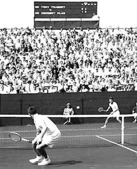 The highlight in what had been an ordinary year for Trabert took place in the Challenge Round on the grass courts of White City Stadium in Sydney on December 27-29. (Years later he admitted that, on and off, during the season he had problems with a blister on his right hand and on both feet.)