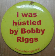 The stories themselves became commodities. For a price, you could have your own Bobby Riggs story. At a hundred dollars a shot, Bobby would take on all comers in these goofy handicap matches. After taking their money, he would hand back an "I Was Hustled by Bobby Riggs" button.