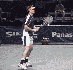 Look at Connors' forehand above to see the classic "Old School " form. The racquet shoots to the back fence on the backswing. The weight is shifted to the front foot (the non-hitting side) putting the body in a forward lean in front of the hands. The body is dragging the racquet forward but getting in the way of the hands at contact making the follow through cramped. The overall swing is slow and push like. The hit is very flat making it difficult to hit through the ball with confidence.