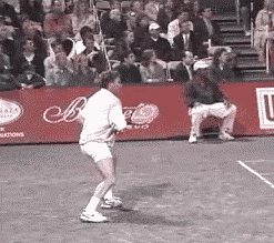 You can see that this method is in direct contradiction with traditional stroke concepts. Emphasis should not be put on getting the racquet to go back or to follow through. This puts the emphasis on the swing of the racquet. Even the "experts" on television talk about racquet acceleration not realizing the counterproductive messages they are conveying to the playing public. The body is what is doing the swinging and the hands are trying to get the racquet to "connect" to the ball.