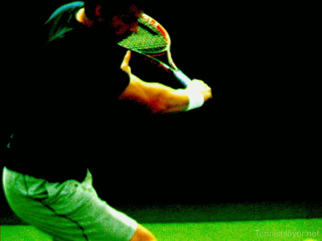Andy Murray's running backhand slice from the rear, filmed in high-speed slow motion at 250fps. His continental grip stays firm as the wrist remains laid back through the forward swing, with a late, subtle release just after contact to keep the slice low and controlled.