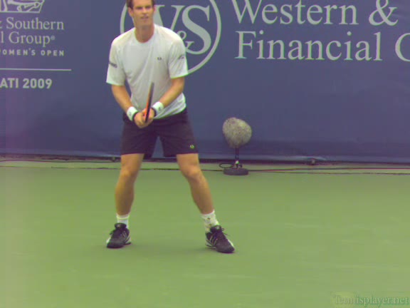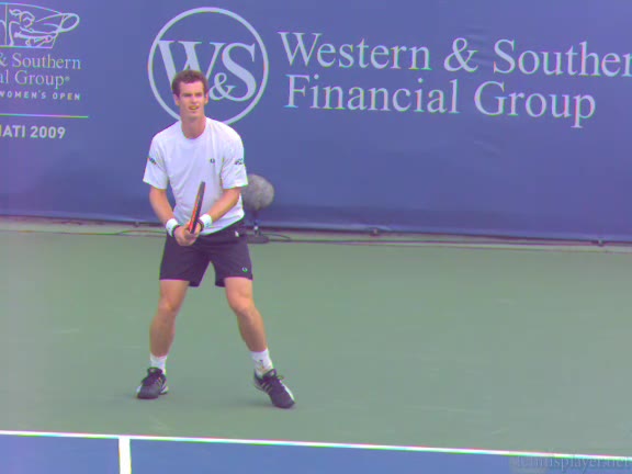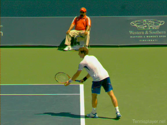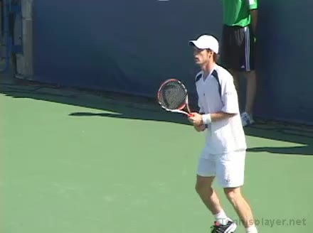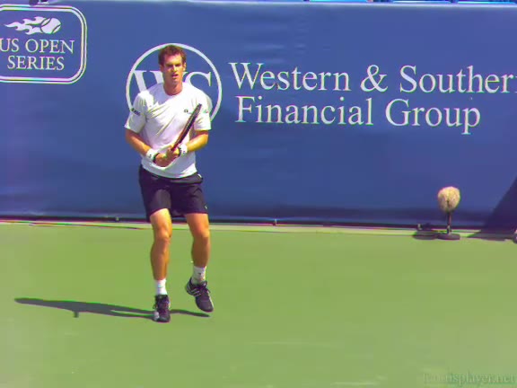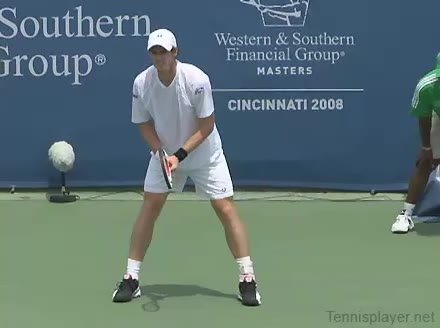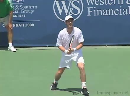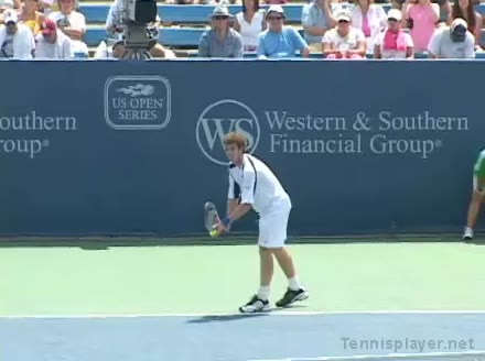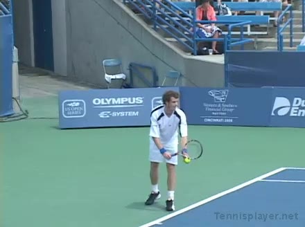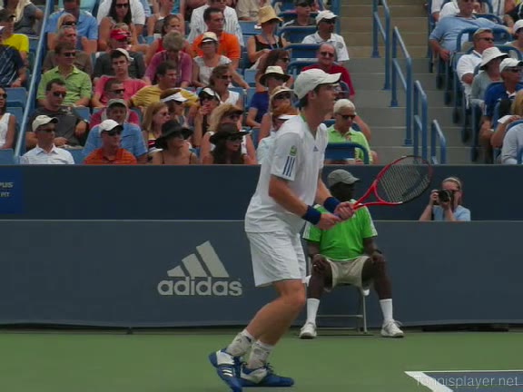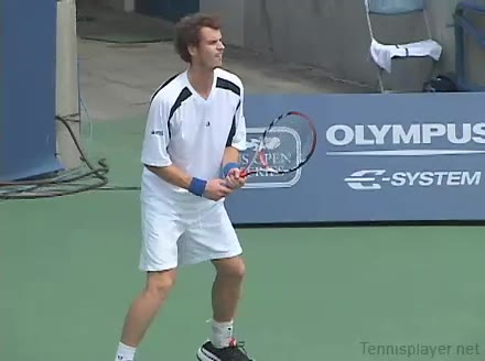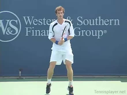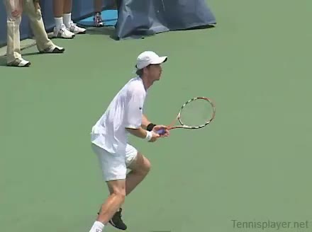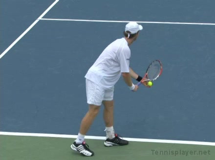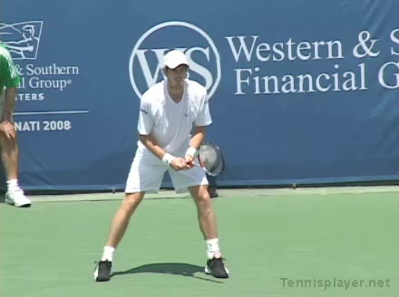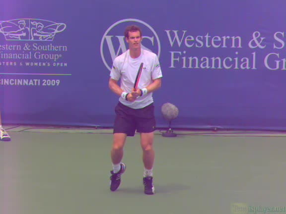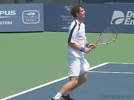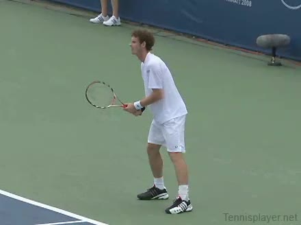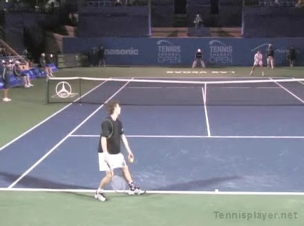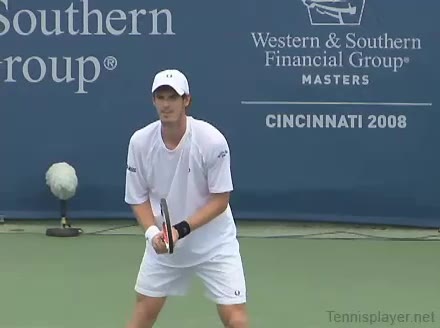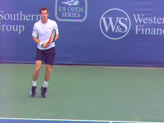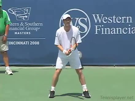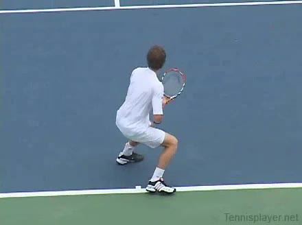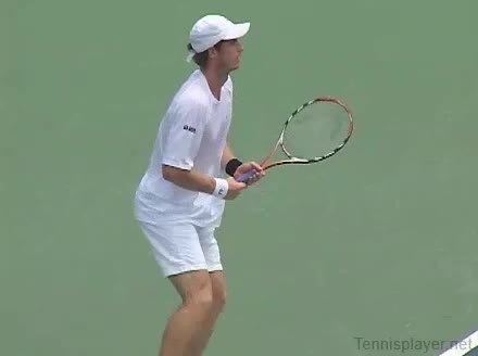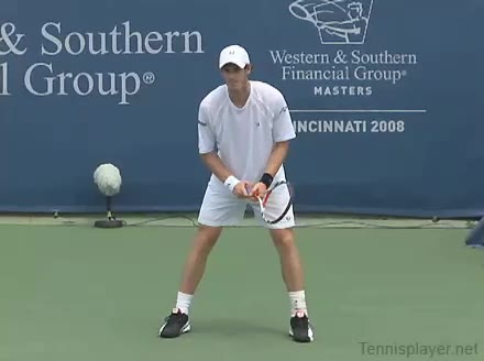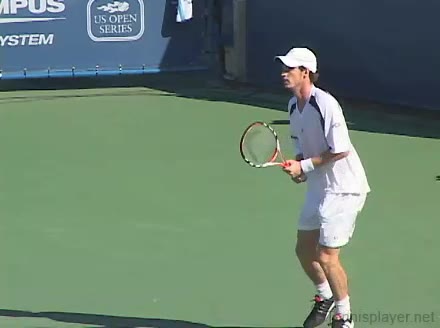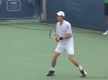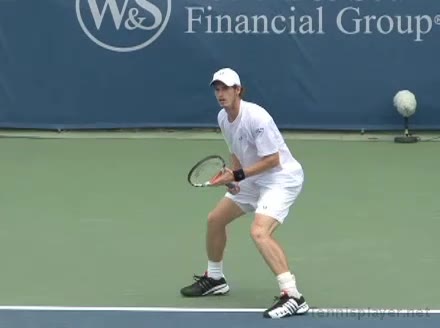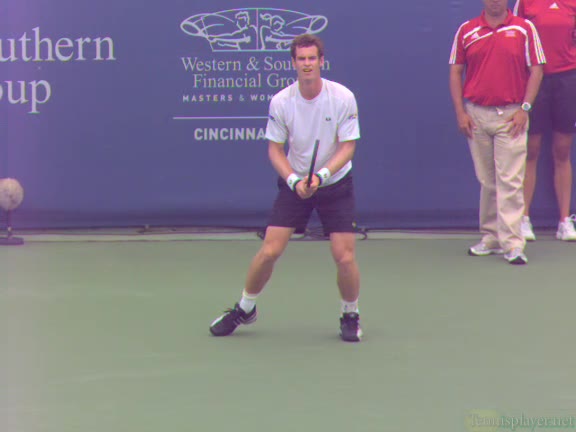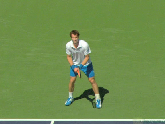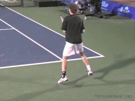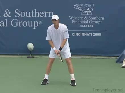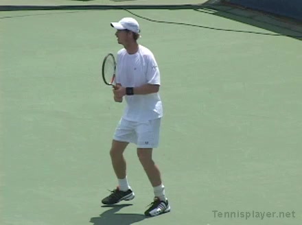 Andy Murray's forehand approach shot followed by a forehand half volley from the front. His semi-western forehand grip is maintained into the half volley, with a stable wrist and minimal wrist snap to soften the ball at contact.