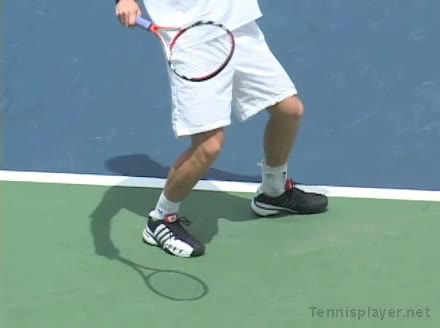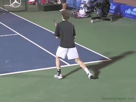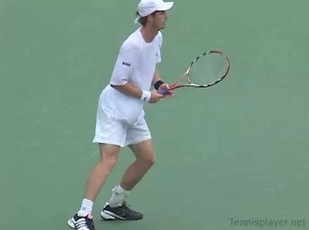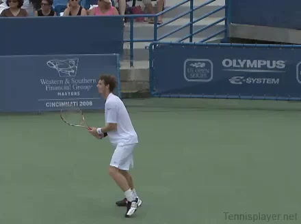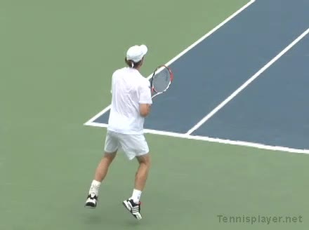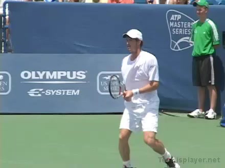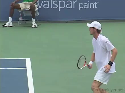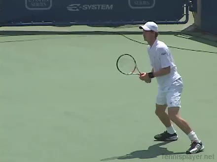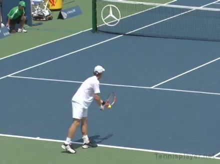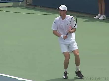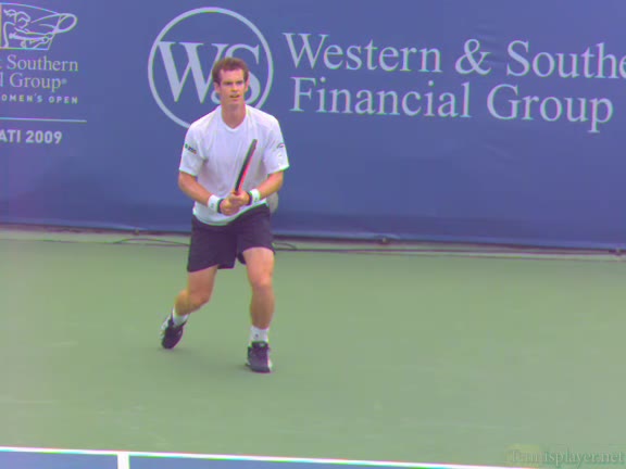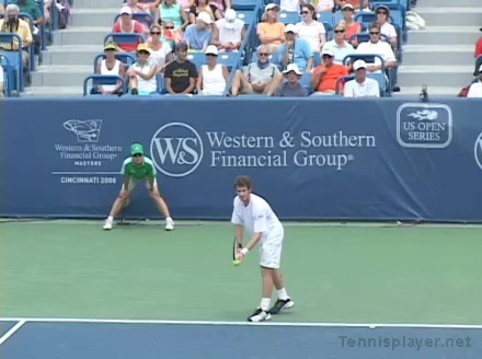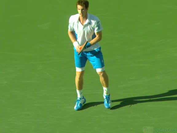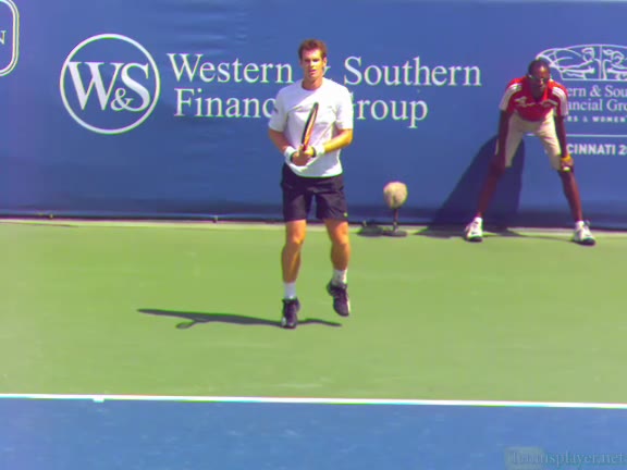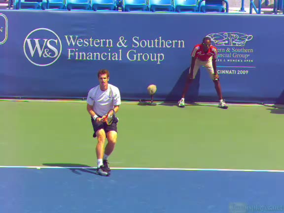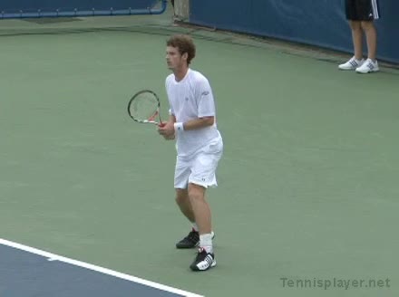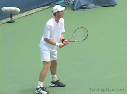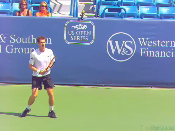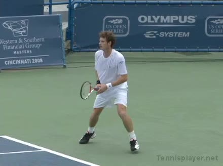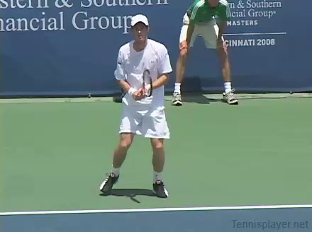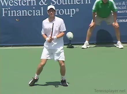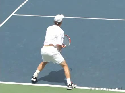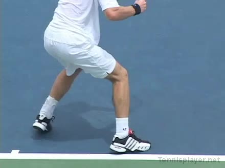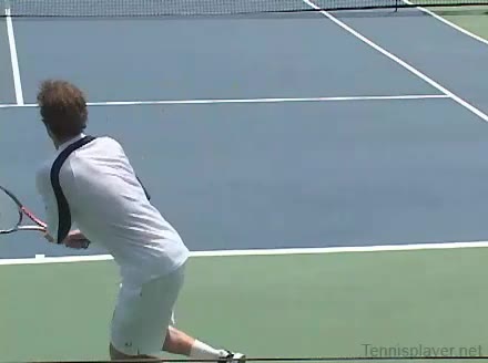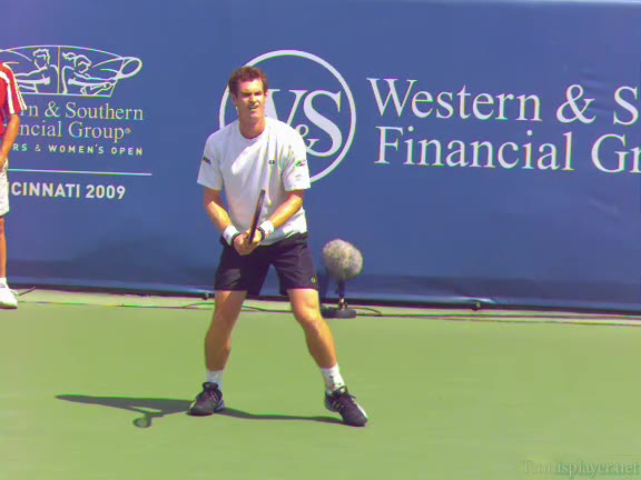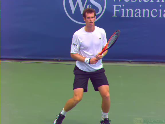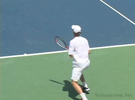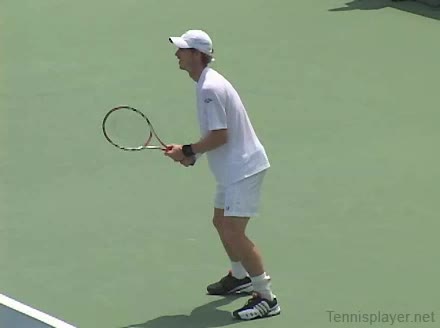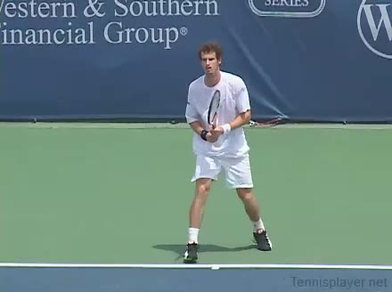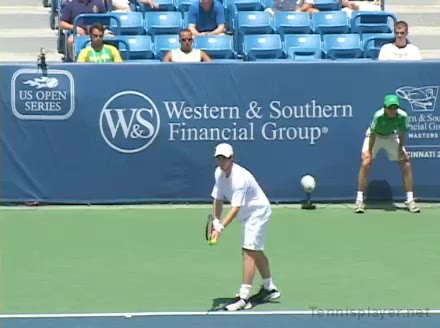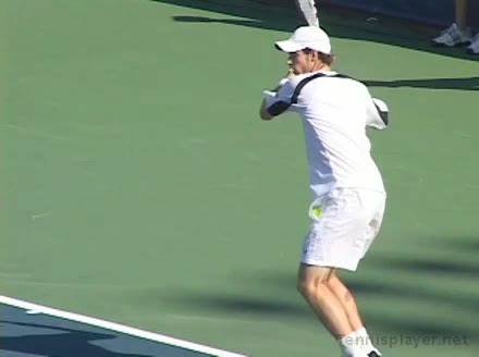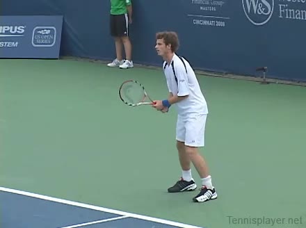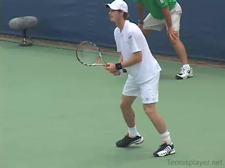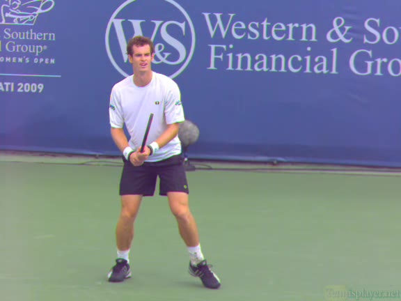 Andy Murray's forehand approach shot followed by a forehand half volley from the front. His semi-western forehand grip is maintained into the half volley, with a stable wrist and minimal wrist snap to soften the ball at contact.