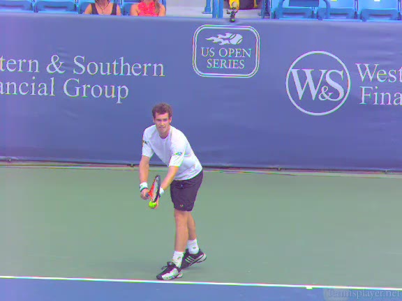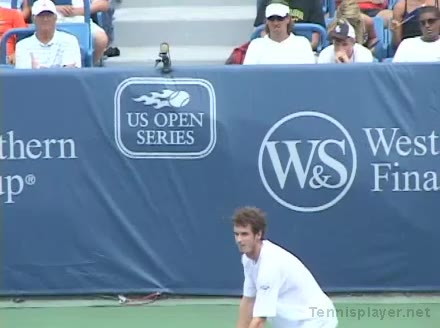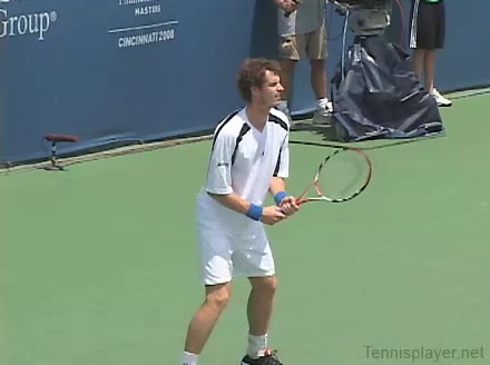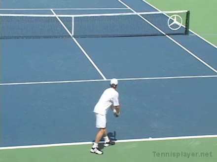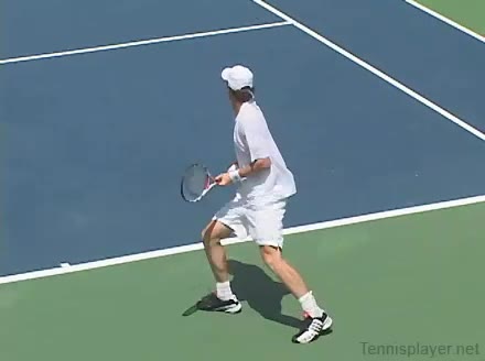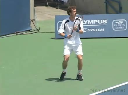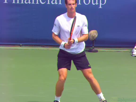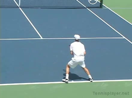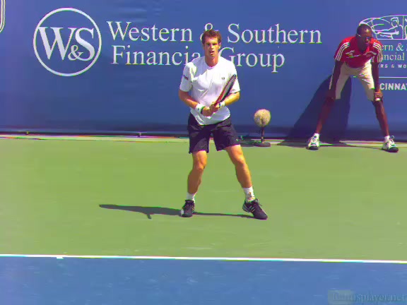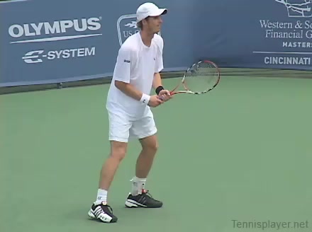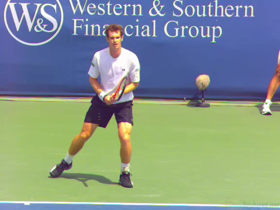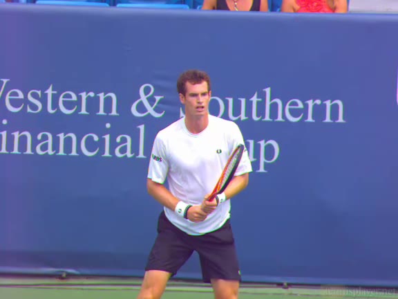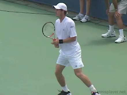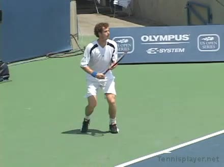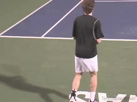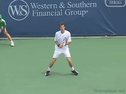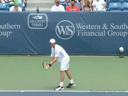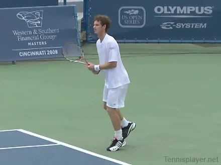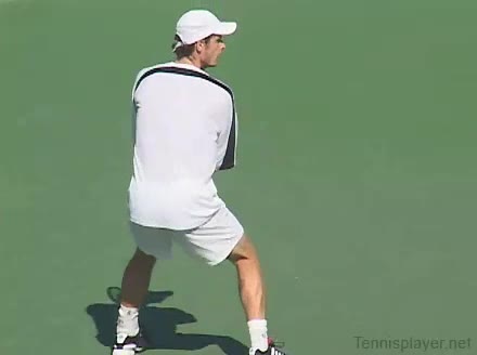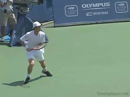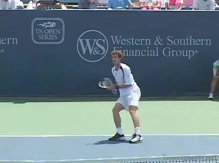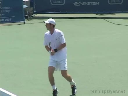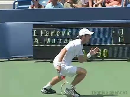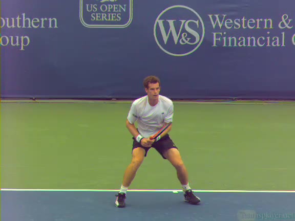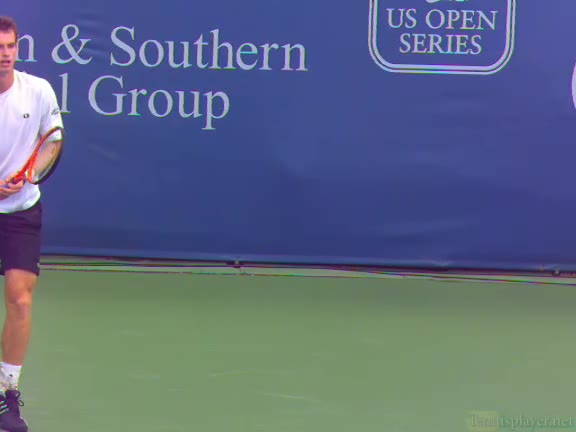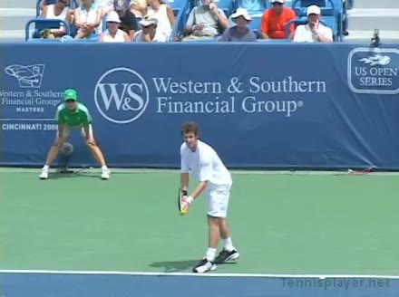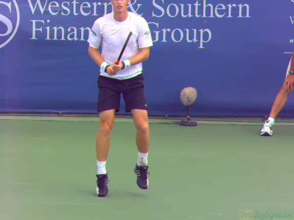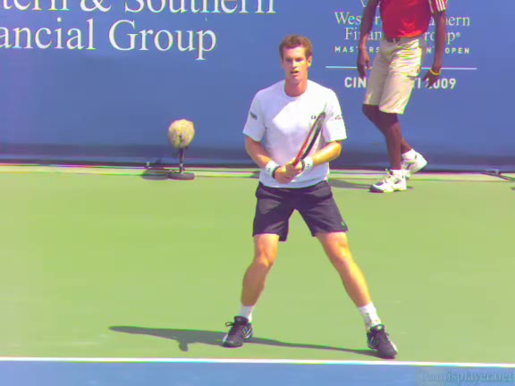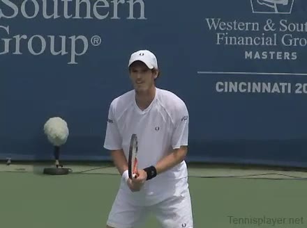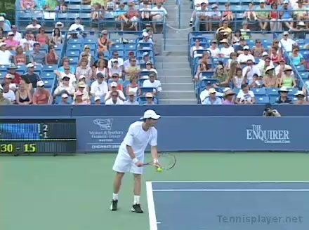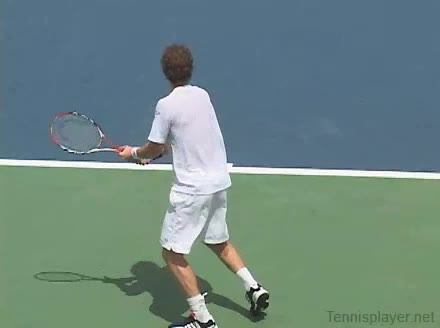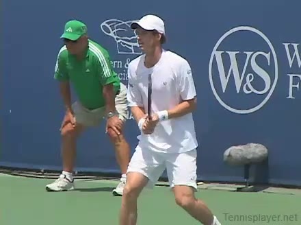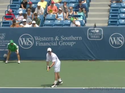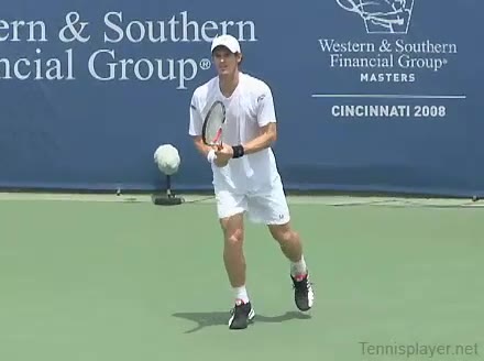 Andy Murray's forehand approach shot followed by a forehand half volley from the front. His semi-western forehand grip is maintained into the half volley, with a stable wrist and minimal wrist snap to soften the ball at contact.
