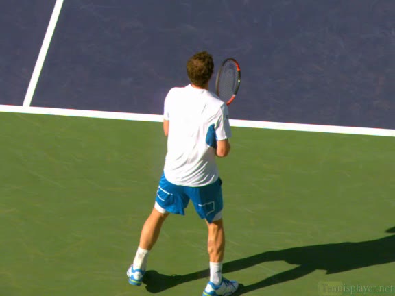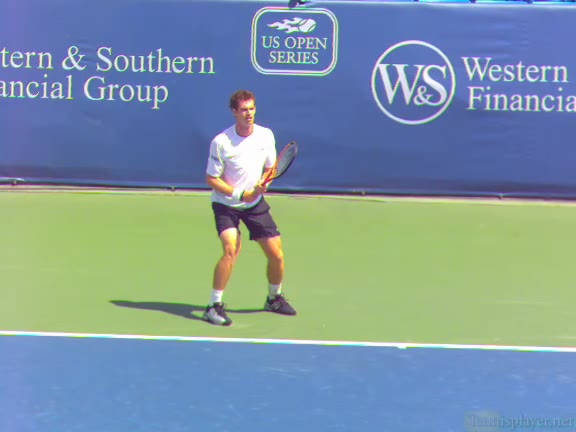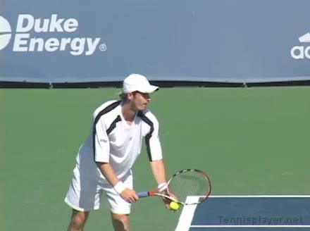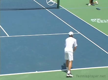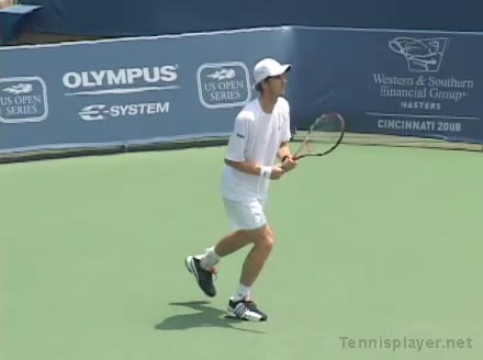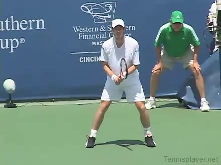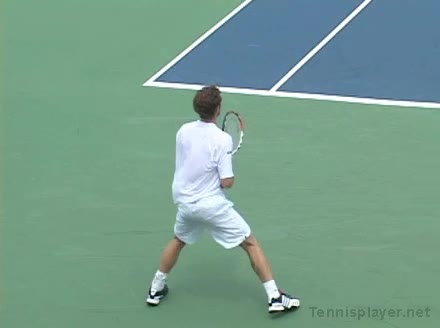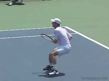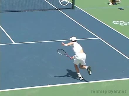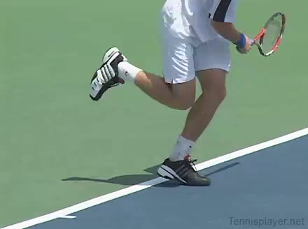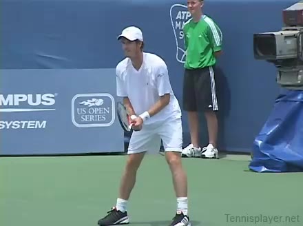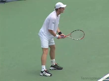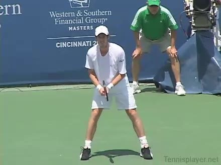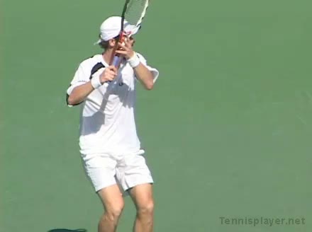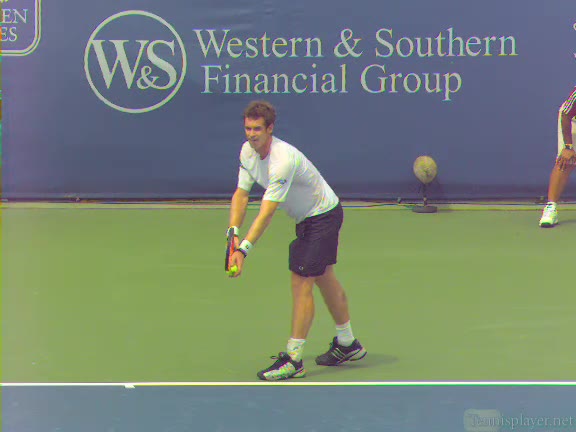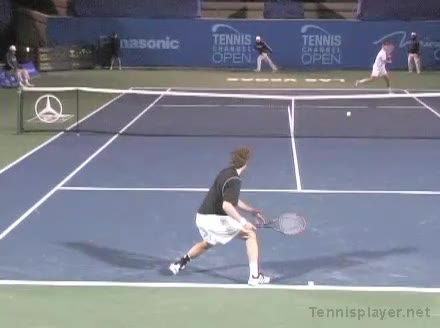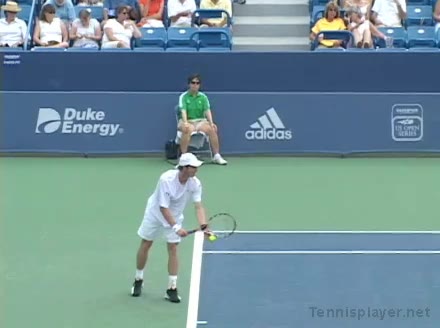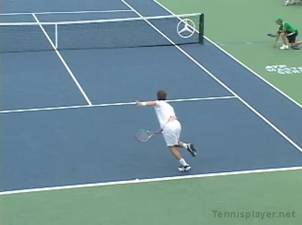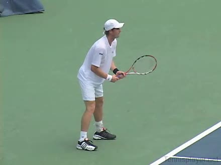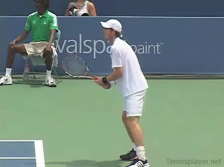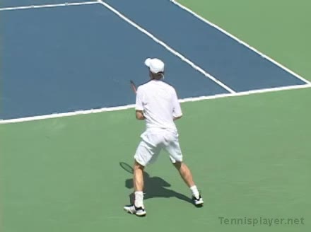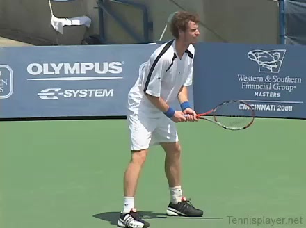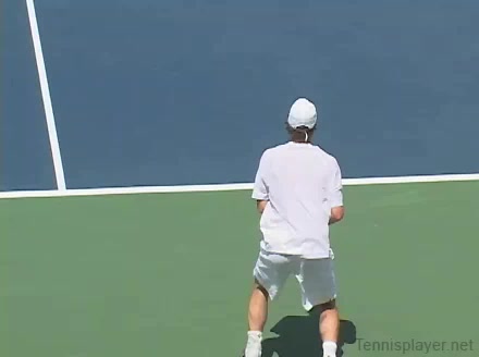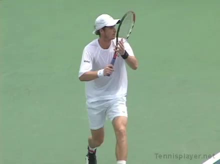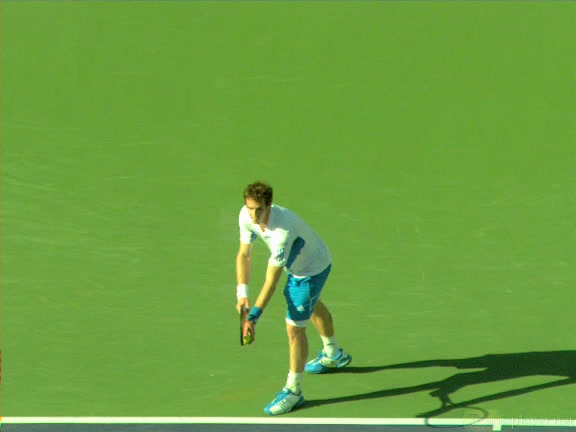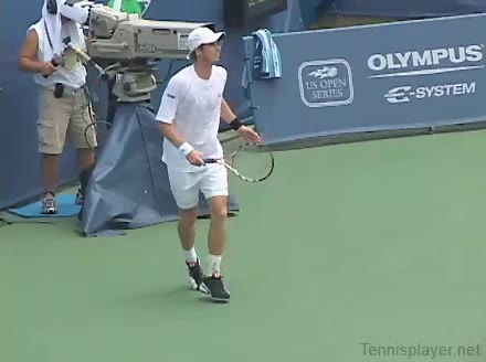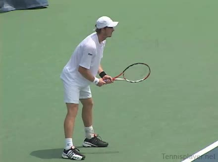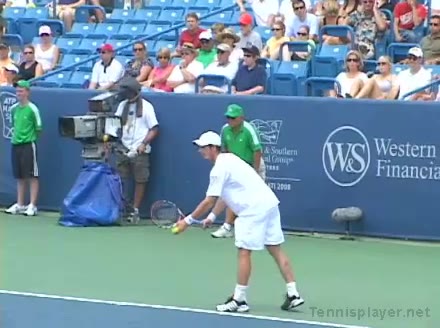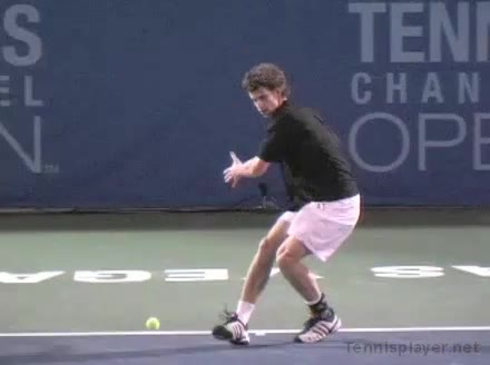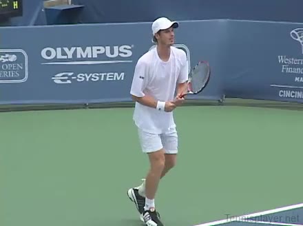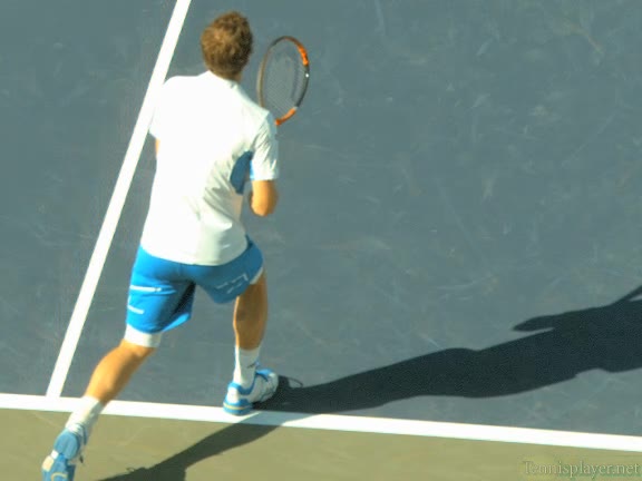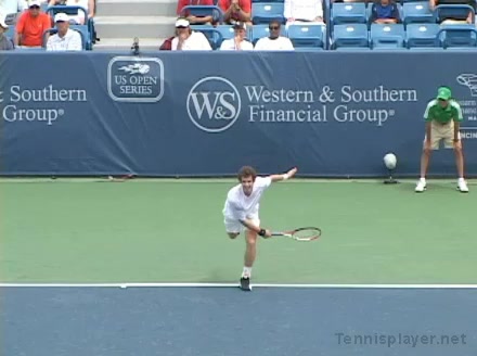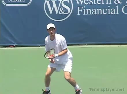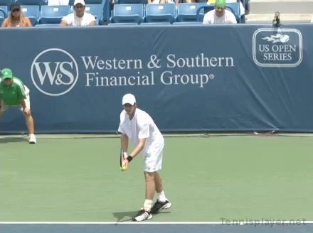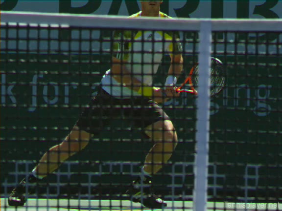 Andy Murray's forehand approach shot followed by a forehand half volley from the front. His semi-western forehand grip is maintained into the half volley, with a stable wrist and minimal wrist snap to soften the ball at contact.