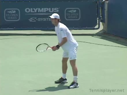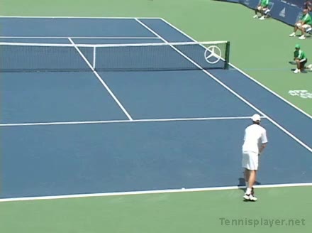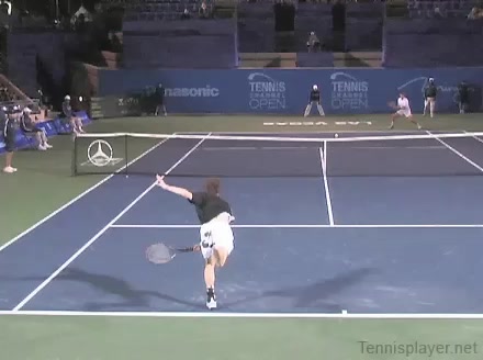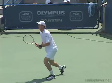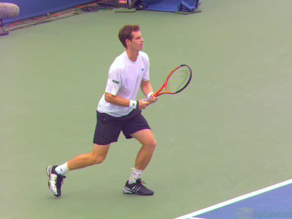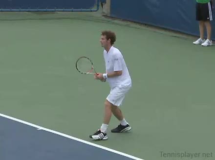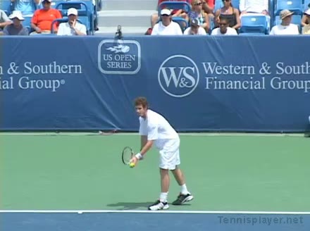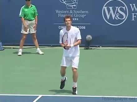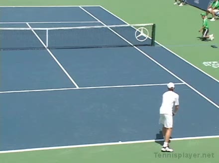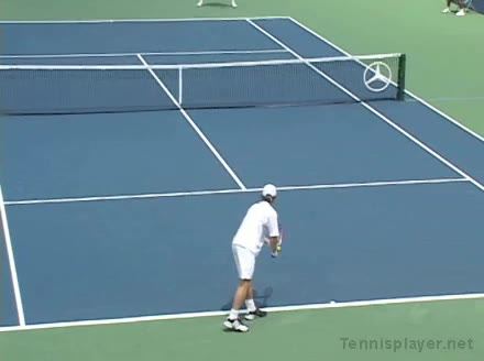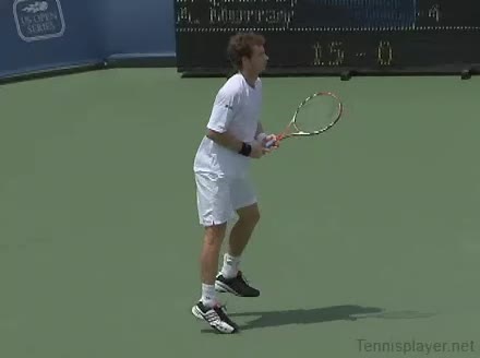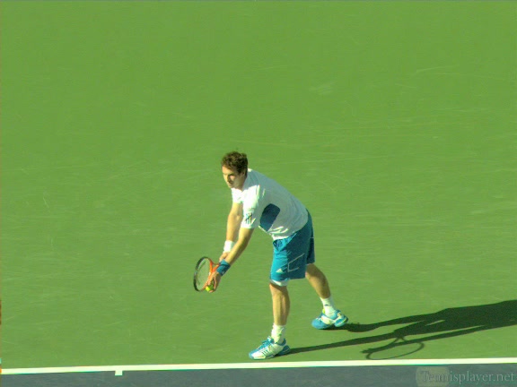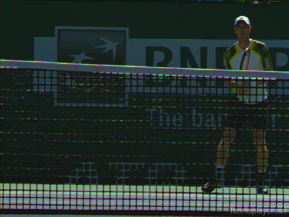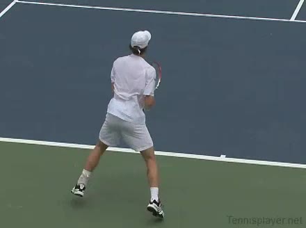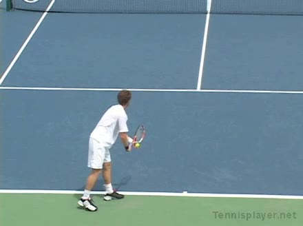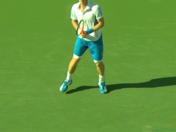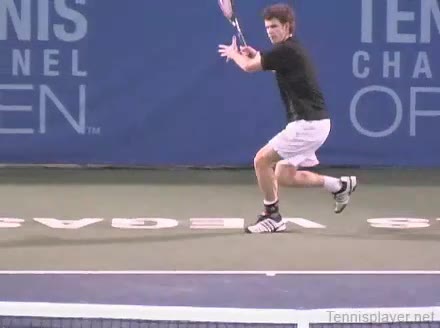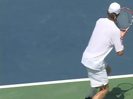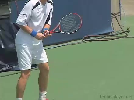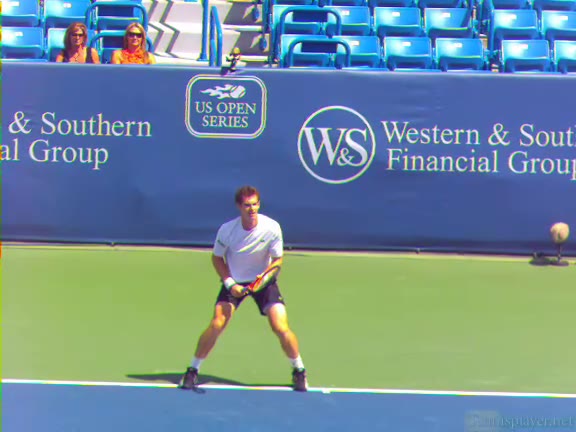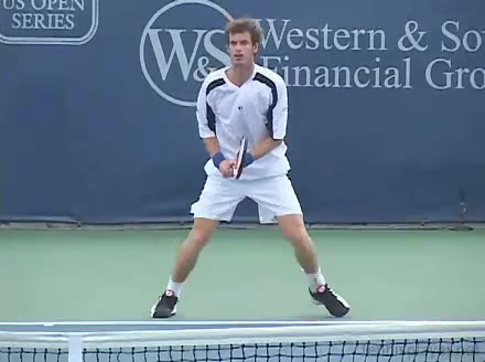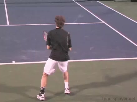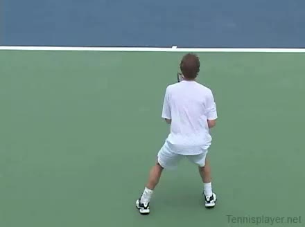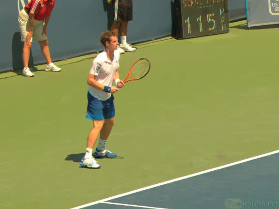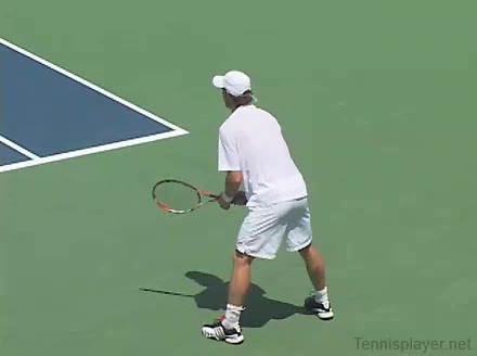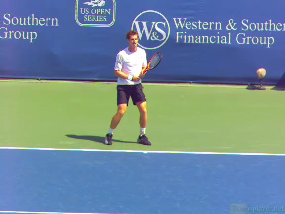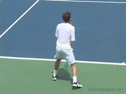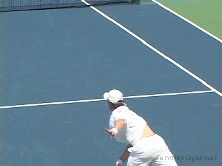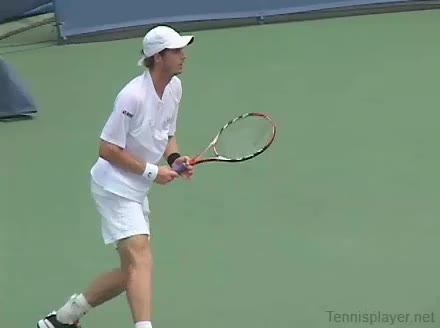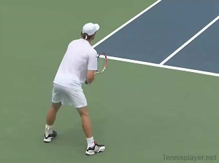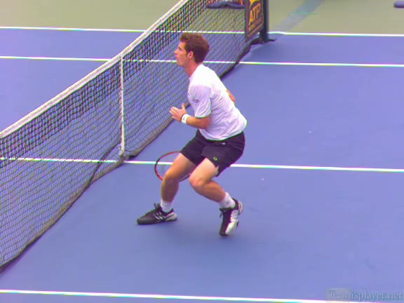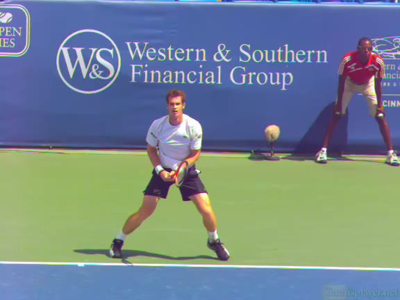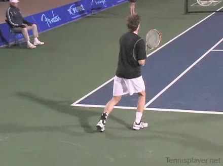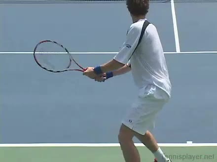 Andy Murray's forehand approach shot followed by a forehand half volley from the front. His semi-western forehand grip is maintained into the half volley, with a stable wrist and minimal wrist snap to soften the ball at contact.