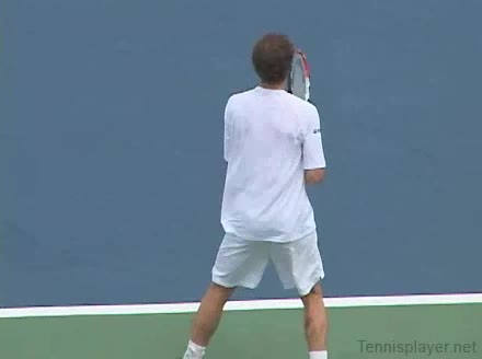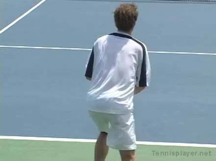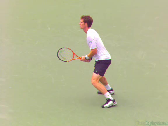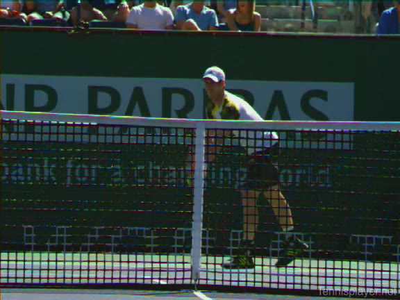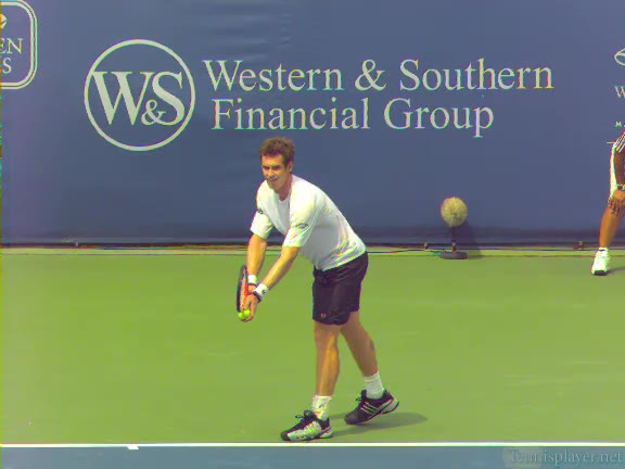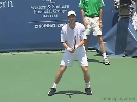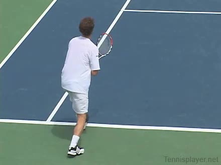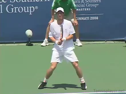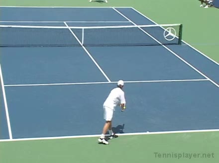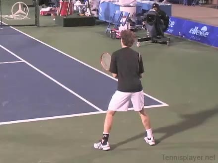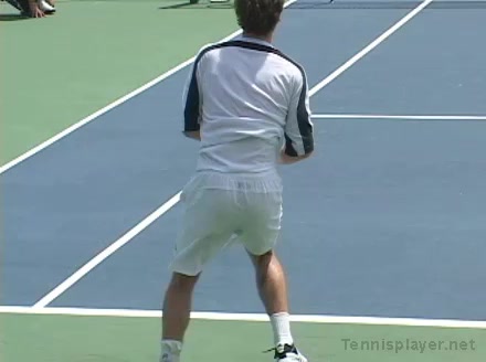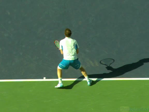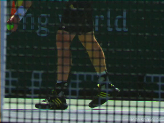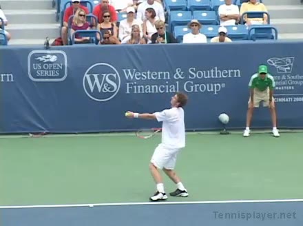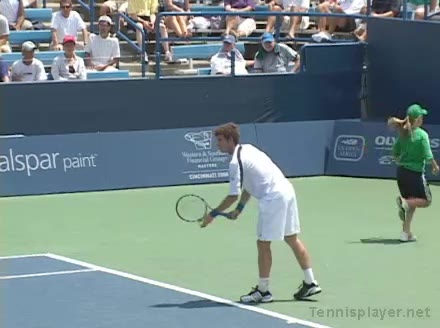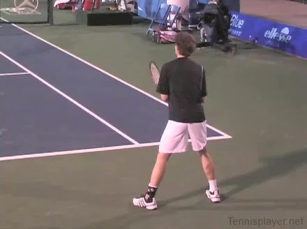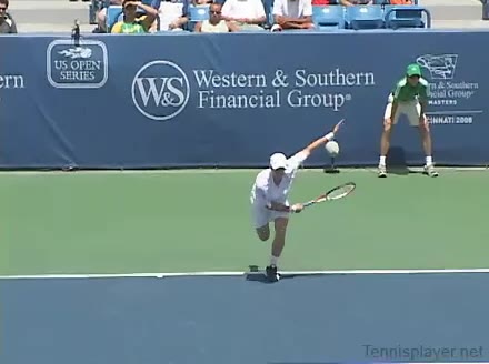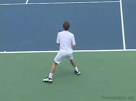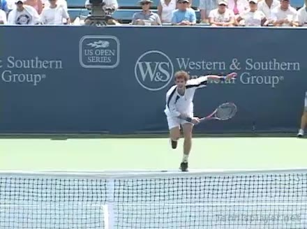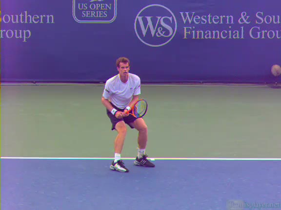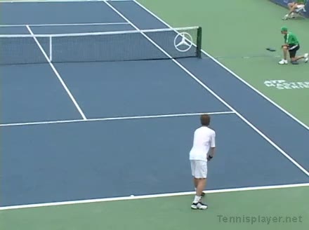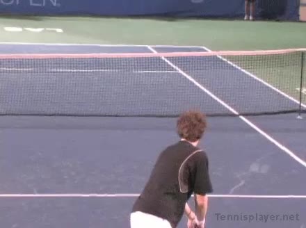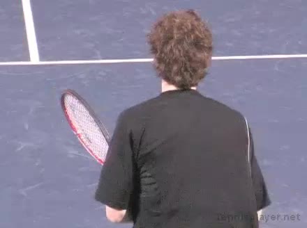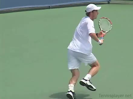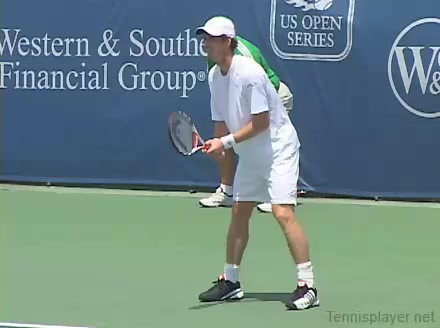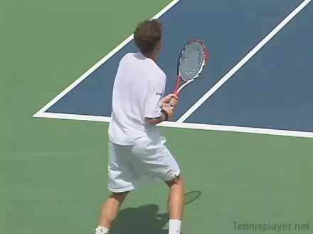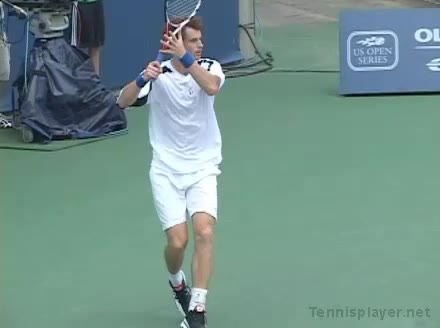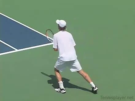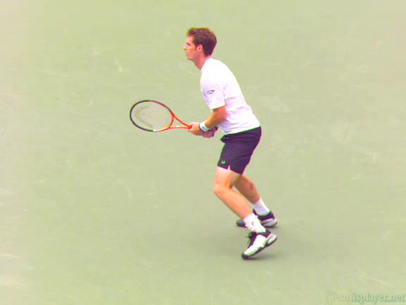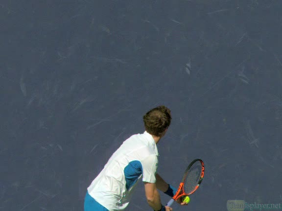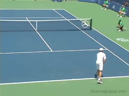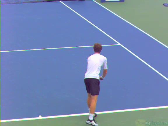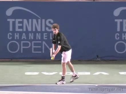 Andy Murray's forehand approach shot followed by a forehand half volley from the front. His semi-western forehand grip is maintained into the half volley, with a stable wrist and minimal wrist snap to soften the ball at contact.