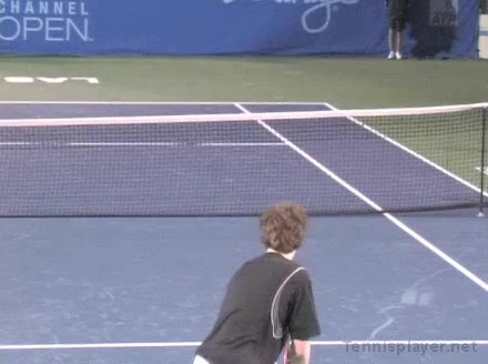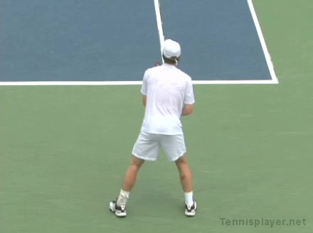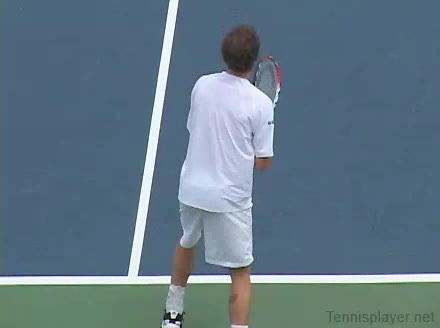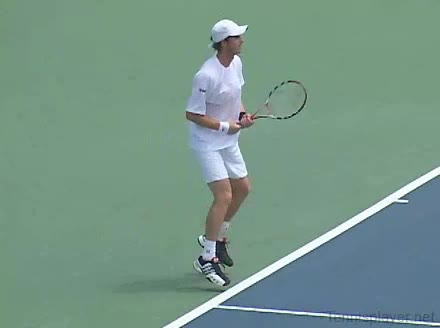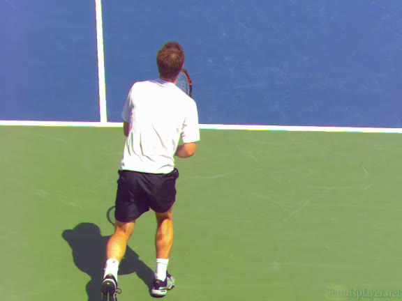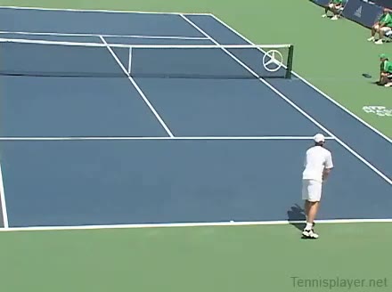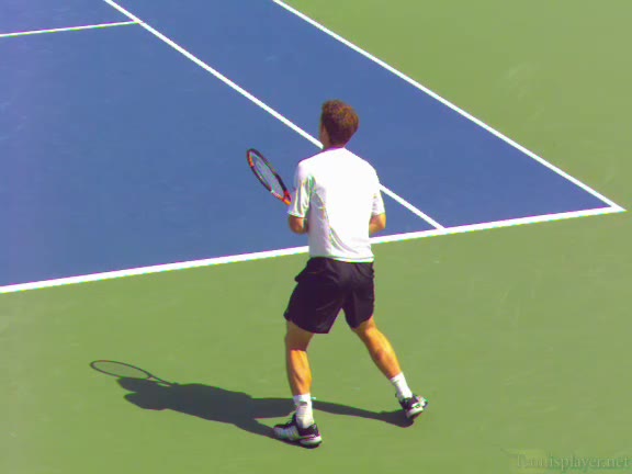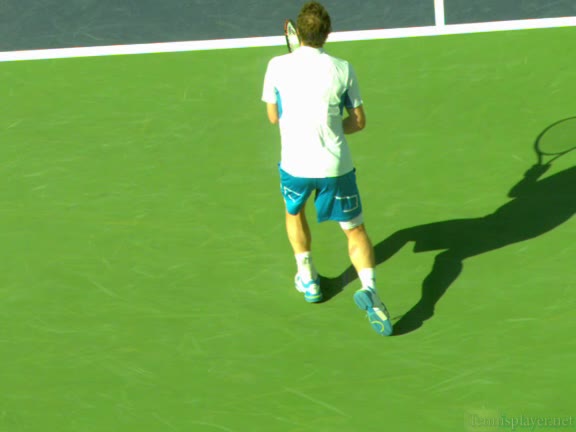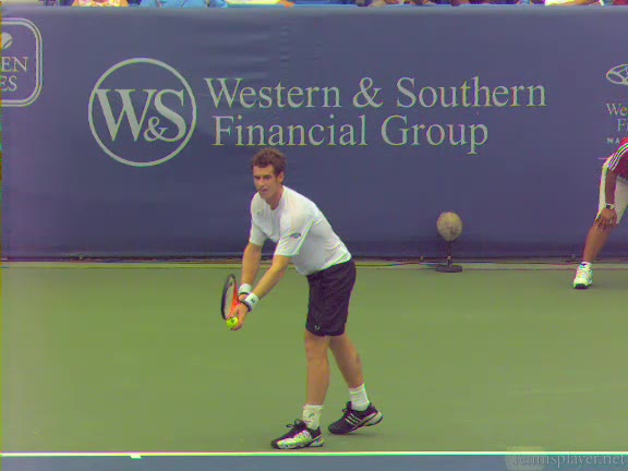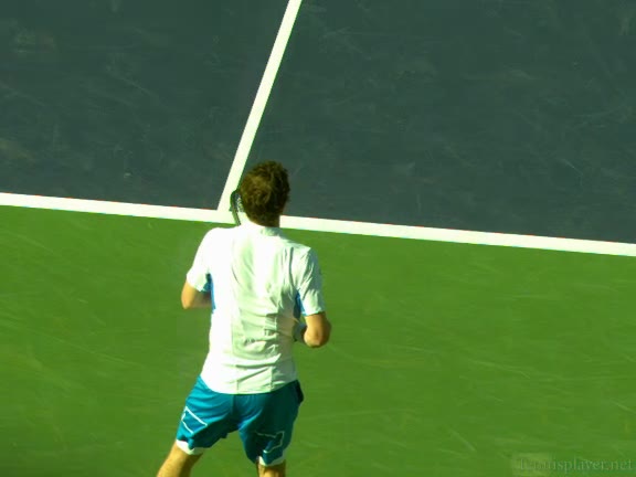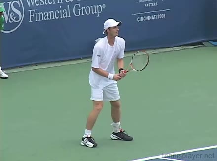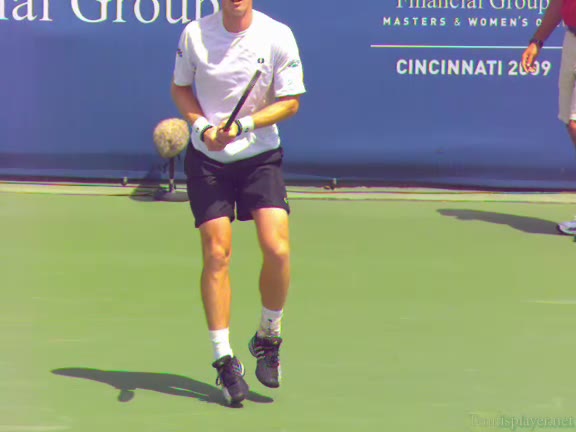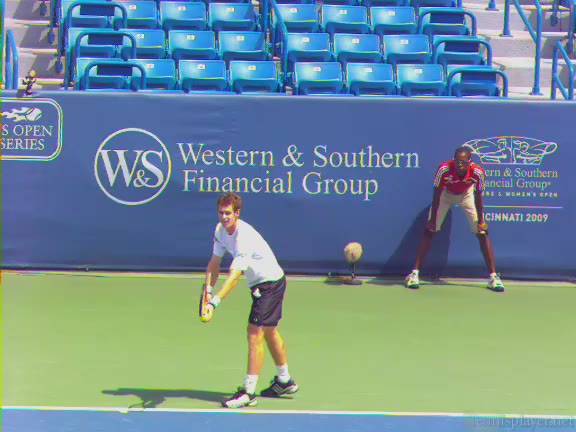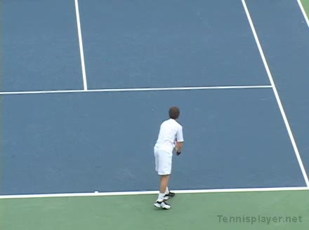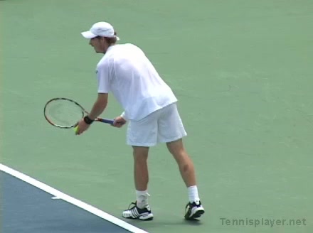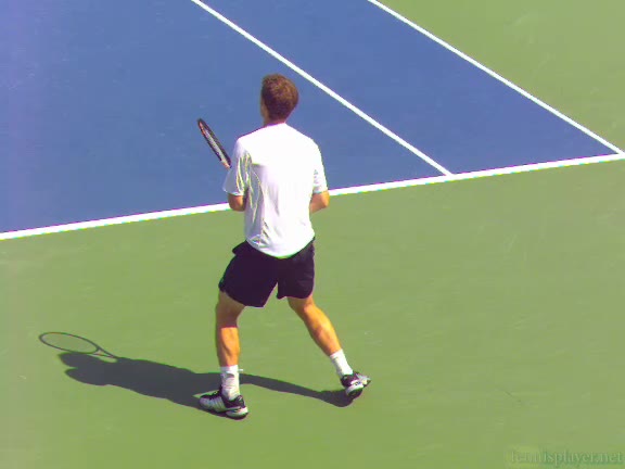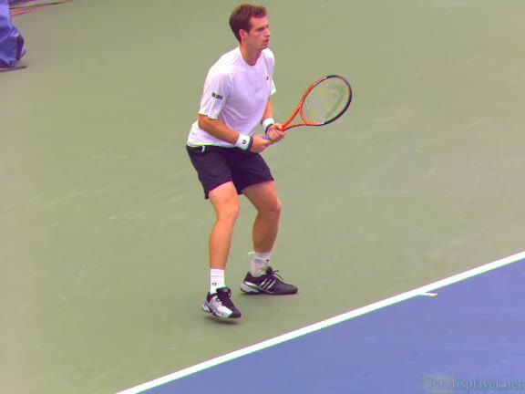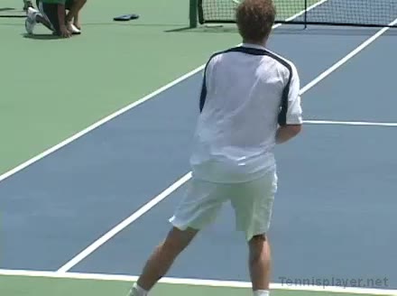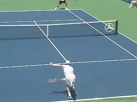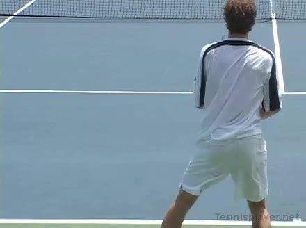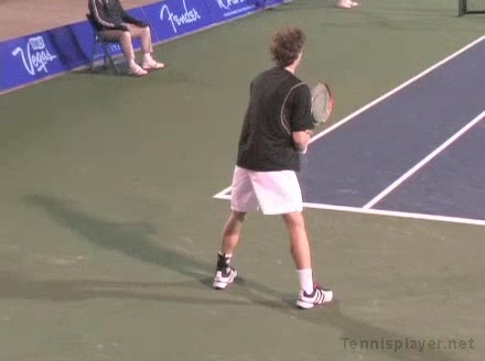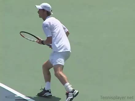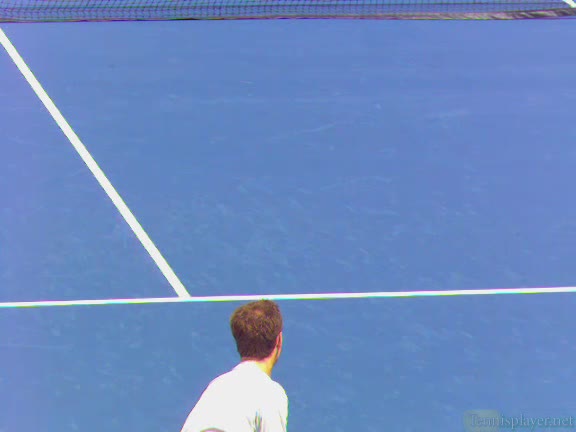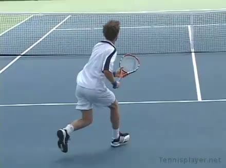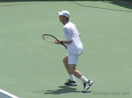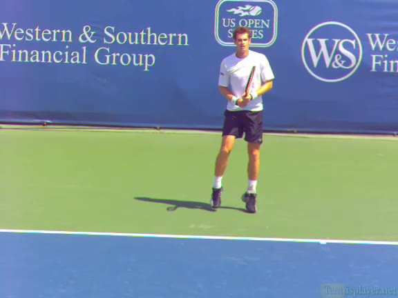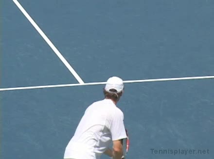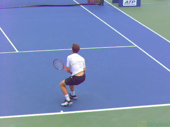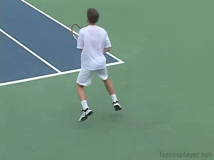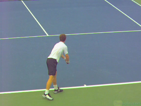 Andy Murray's forehand approach shot followed by a forehand half volley from the front. His semi-western forehand grip is maintained into the half volley, with a stable wrist and minimal wrist snap to soften the ball at contact.