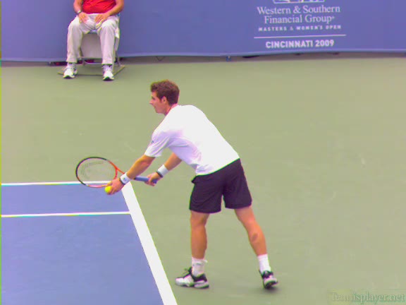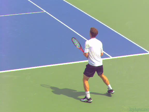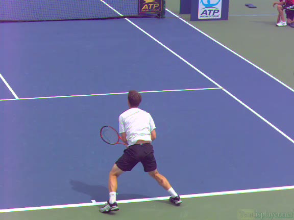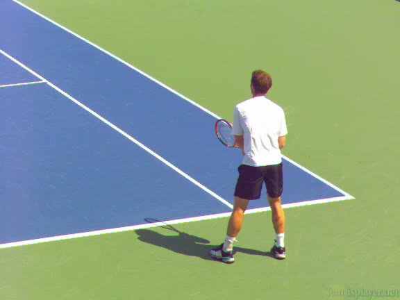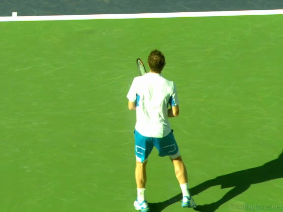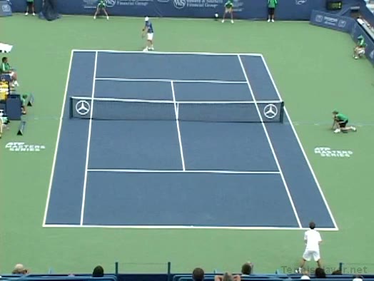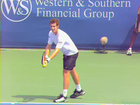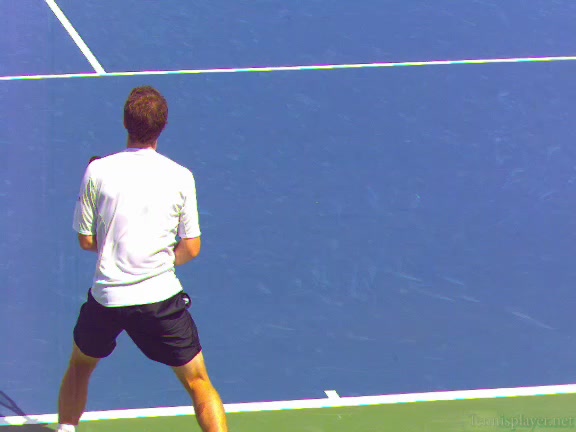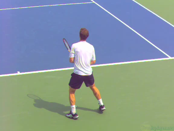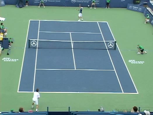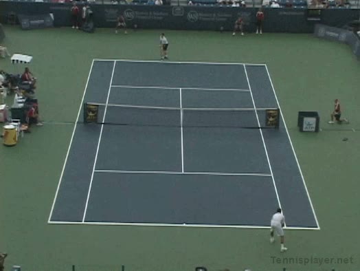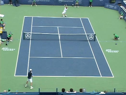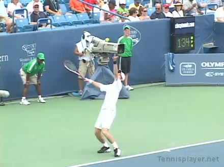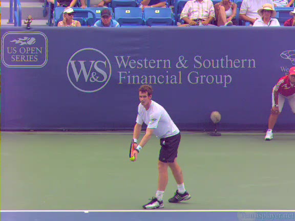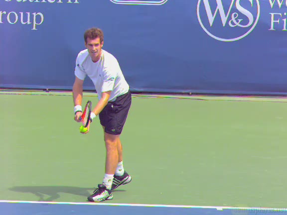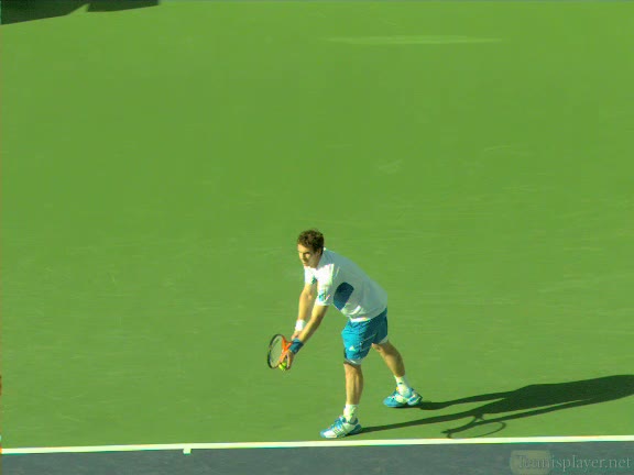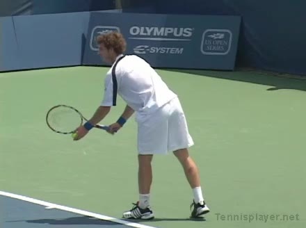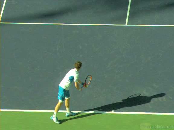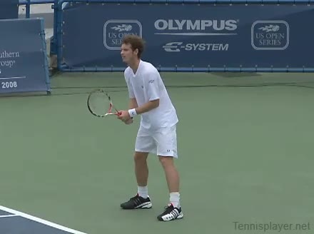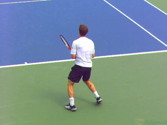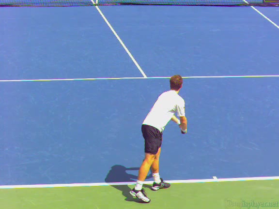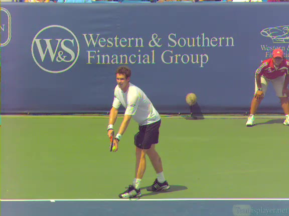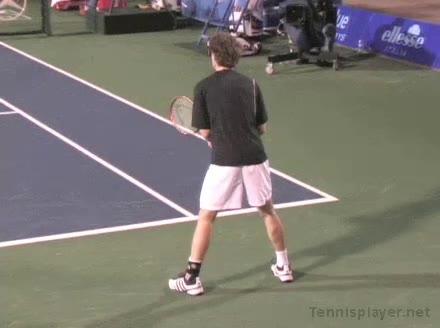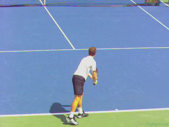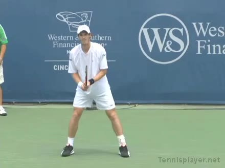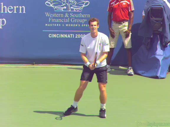Andy Murray's forehand approach shot followed by a forehand half volley from the front. His semi-western forehand grip is maintained into the half volley, with a stable wrist and minimal wrist snap to soften the ball at contact.