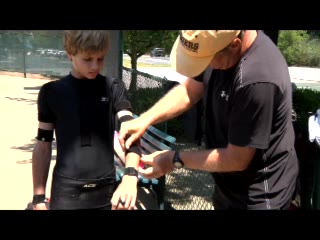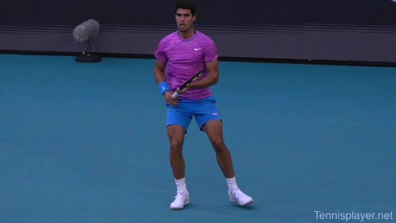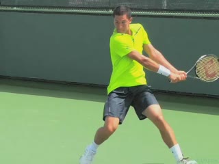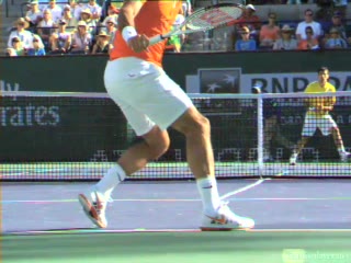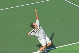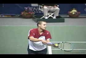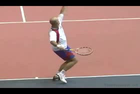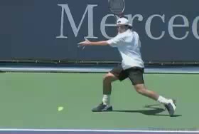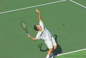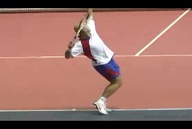 Brian Gordon Active Coach Video Library (174 videos) Filters All Strokes Uncategorized Backhand Forehand All Angles Front Side All Techniques Leg-kick Highest FPS, then name Name Newest first Name FPS Duration Brian Gordon: Developing an ATP Forehand: The Dynamic Slot (10 of 107) Brian Gordon’s forehand biomechanics animation from a neutral court position, filmed from a side/court-level angle. The animation clearly depicts deep knee flexion into the loading phase followed by aggressive leg drive and hip rotation leading the kinetic chain into contact. 5.4s 3D Analysis: The Serve Wind Up (10 of 15) Brian Gordon's serve biomechanics drill focusing on arm-to-trunk connection from a central baseline position, filmed from a side CourtLevel angle. His follow-through brings the racquet across his body while the non-hitting arm tucks in toward the torso, helping his weight transfer forward into a balanced, ready stance. 3.9s The ATP Two Handed Backhand: The Dynamic Slot (10 of 12) Brian Gordon’s two-handed backhand from a central baseline position, filmed from a rear court-level angle. His timing of the split step into a wide, semi-open stance and the sequencing of his hip and shoulder rotation into contact are clearly visible from behind. 7.5s The Serve in 3D: The Upward Swing Part 1 (9 of 12) Flash’s serve from a central baseline position, filmed from a 3D animation angle with extreme camera tilt. The shoulder-over-shoulder action and trunk uncoil are clearly seen as the torso drives up and into contact, with the lead shoulder rising while the rear shoulder drops to continue the kinetic chain. 3s Brian Gordon: Developing an ATP Forehand: The Forward Swing (10 of 34) Brian Gordon’s forehand animation from a central court position is filmed from a side, biomechanical analysis angle. The animation clearly depicts the transition from loading in a semi-open stance into contact with a stable base, emphasizing how the feet stay grounded through the forward swing before initiating recovery. 4.4s The Serve Backswing: Part 1 (5 of 13) Brian Gordon's serve biomechanics animation focusing on hip rotation, filmed from a side CourtLevel angle. The follow-through clearly shows the hips continuing to rotate toward the court as the torso unwinds, with the non-hitting arm dropping and the weight transferring onto the front leg into a stable landing position. 8.9s The ATP Two Handed Backhand: The Forward Swing (10 of 14) Rafael Nadal's two-handed backhand forward swing from a neutral baseline position, filmed from a side animation angle. At contact his racket face is nearly square to the ball with the contact point slightly in front of his lead hip, and the racket head accelerates on a low-to-high path that finishes around shoulder height. 6.9s 3D Tennis: The Serve Backswing: Part 2 Roddick's serve from a central baseline position, filmed from a side animation angle. The animation clearly depicts his extreme shoulder-over-shoulder action and pronounced trunk coil, with the torso uncoiling upward and into the court in a distinct sequence ahead of the arm whip. 2.6s The Serve in 3D: Upward Swing Part 2 (6 of 18) Roddick's serve from a central baseline position, filmed from a rear 3D animation angle. His follow-through finishes across his body with the torso uncoiling toward the court and the non-hitting arm folding back into a compact position as he lands into his front leg and begins recovery. 6.1s Brian Gordon: Developing an ATP Forehand: The Dynamic Slot (11 of 107) Brian Gordon’s forehand animation from a central baseline position, filmed from a side/court-level angle. The contact point is slightly in front of the lead hip with the racket face square to the ball and the racket head accelerating upward on a steep, low-to-high path. 5.9s Brian Gordon: Developing an ATP Forehand: The Forward Swing (11 of 34) Brian Gordon's forehand contact-phase animation from a central court position, filmed from a side biomechanical view. The trunk rotation into contact is clearly sequenced after the initial shoulder coil, making the degree and timing of shoulder uncoil relative to pelvic turn easy to distinguish. 9.3s The Serve in 3D: Upward Swing Part 2 (7 of 18) Henman's serve from the center of the baseline, filmed from a side CourtLevel angle. His follow-through carries his racket across his body while his back leg swings forward, clearly shifting his weight into the court and setting up a balanced recovery stance. 4.6s The Serve Backswing: Part 1 (6 of 13) Henman's serve backswing from a neutral position, filmed from a rear angle. At the top of the backswing, the racket face is slightly closed with the strings angled toward the side fence as the hand rises roughly to head height behind the body. 8.1s The ATP Two Handed Backhand: The Forward Swing (11 of 14) Novak Djokovic’s two-handed backhand forward swing animation from a neutral court position, filmed from a side biomechanical view. The animation clearly depicts the racket face staying square to the ball through contact with the contact point slightly in front of the lead hip and the racket head accelerating on a low-to-high path. 7.7s Brian Gordon: Developing an ATP Forehand: The Dynamic Slot (12 of 107) Brian Gordon’s forehand biomechanics animation from a neutral position, filmed from a side angle. The animation emphasizes the forehand “dynamic slot” with clear wrist lag into external rotation before a pronounced pronation and ulnar deviation through contact. 4.8s Brian Gordon: Developing an ATP Forehand: The Forward Swing (12 of 34) Brian Gordon’s forehand biomechanics animation focusing on arm structures in the forward swing, filmed from a neutral instructional angle. The contact point is depicted with a laid-back wrist and a relatively straight hitting arm, with the racket face slightly closed as it accelerates upward and forward through the ball. 11.3s The Serve in 3D: The Upward Swing Part 1 (10 of 12) Flash's serve from the center of the ba