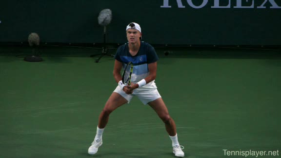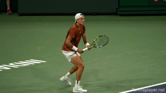 Aggressive baseliner with a powerful forehand and competitive fire. Quick development and willingness to play attacking tennis from both wings.