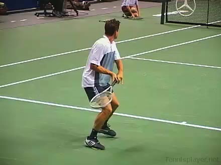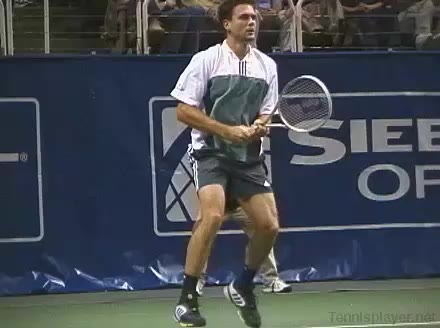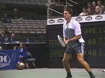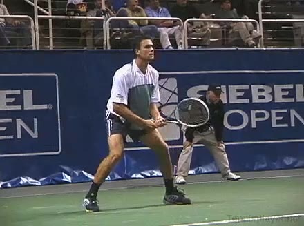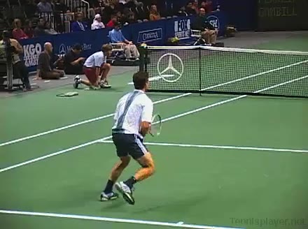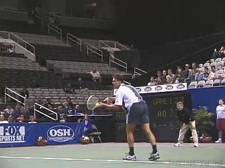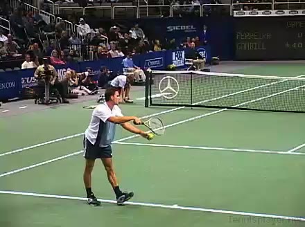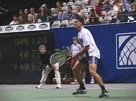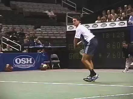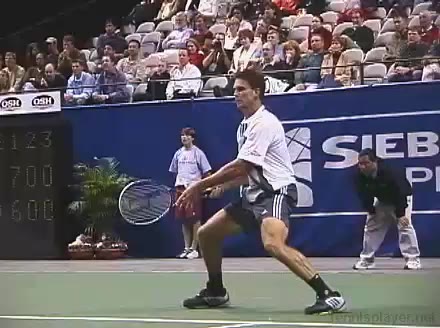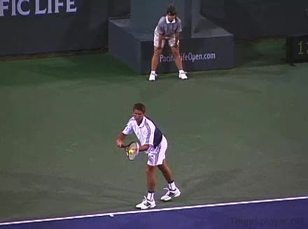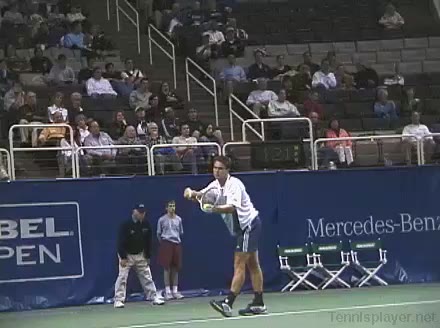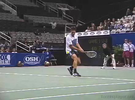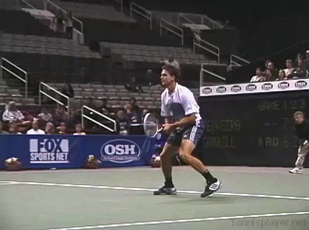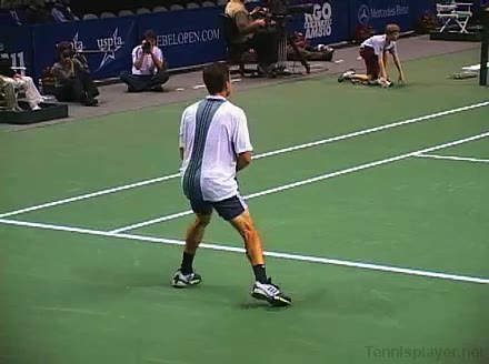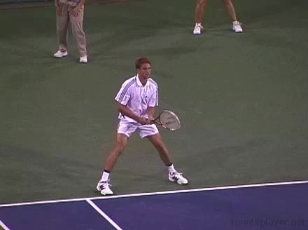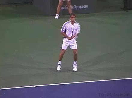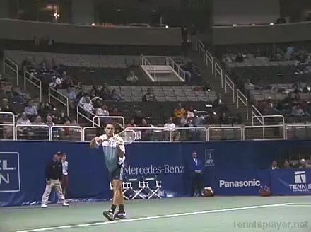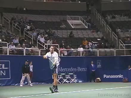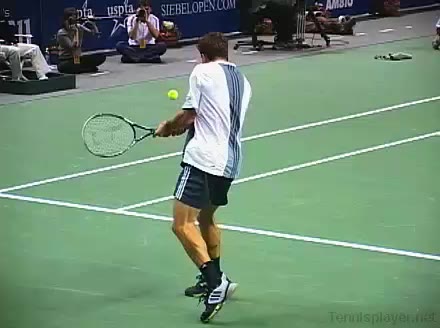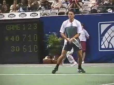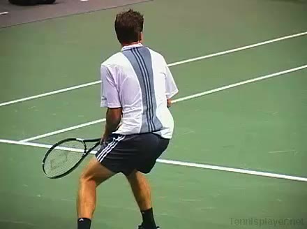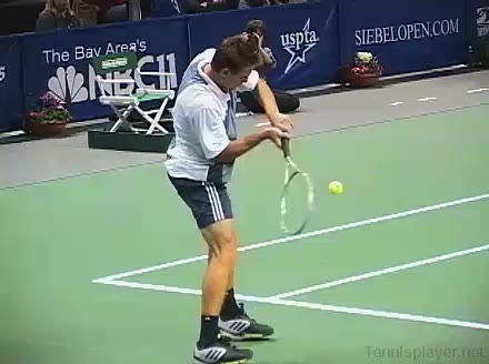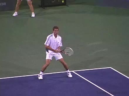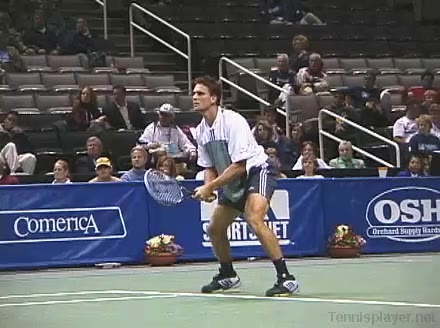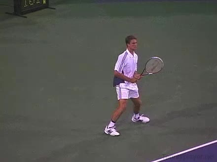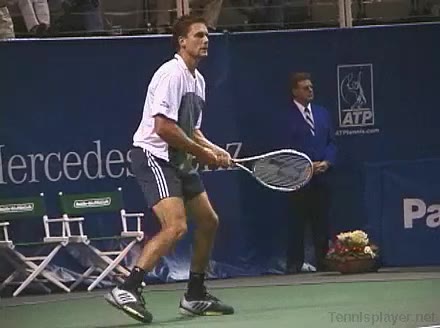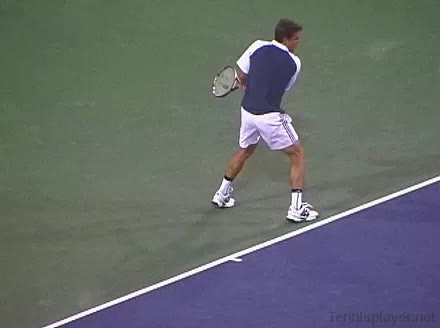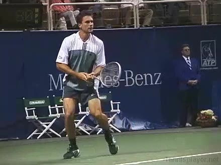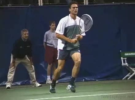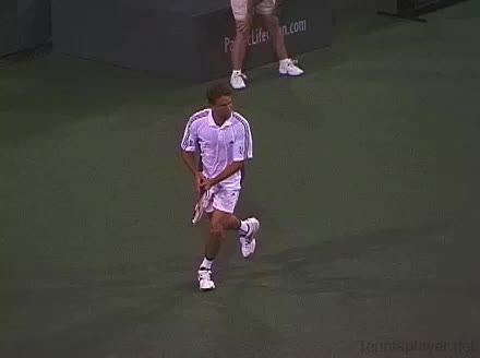 Powerful, athletic baseliner with a big serve and aggressive forehand. Strong physical player who relied on power and athleticism.