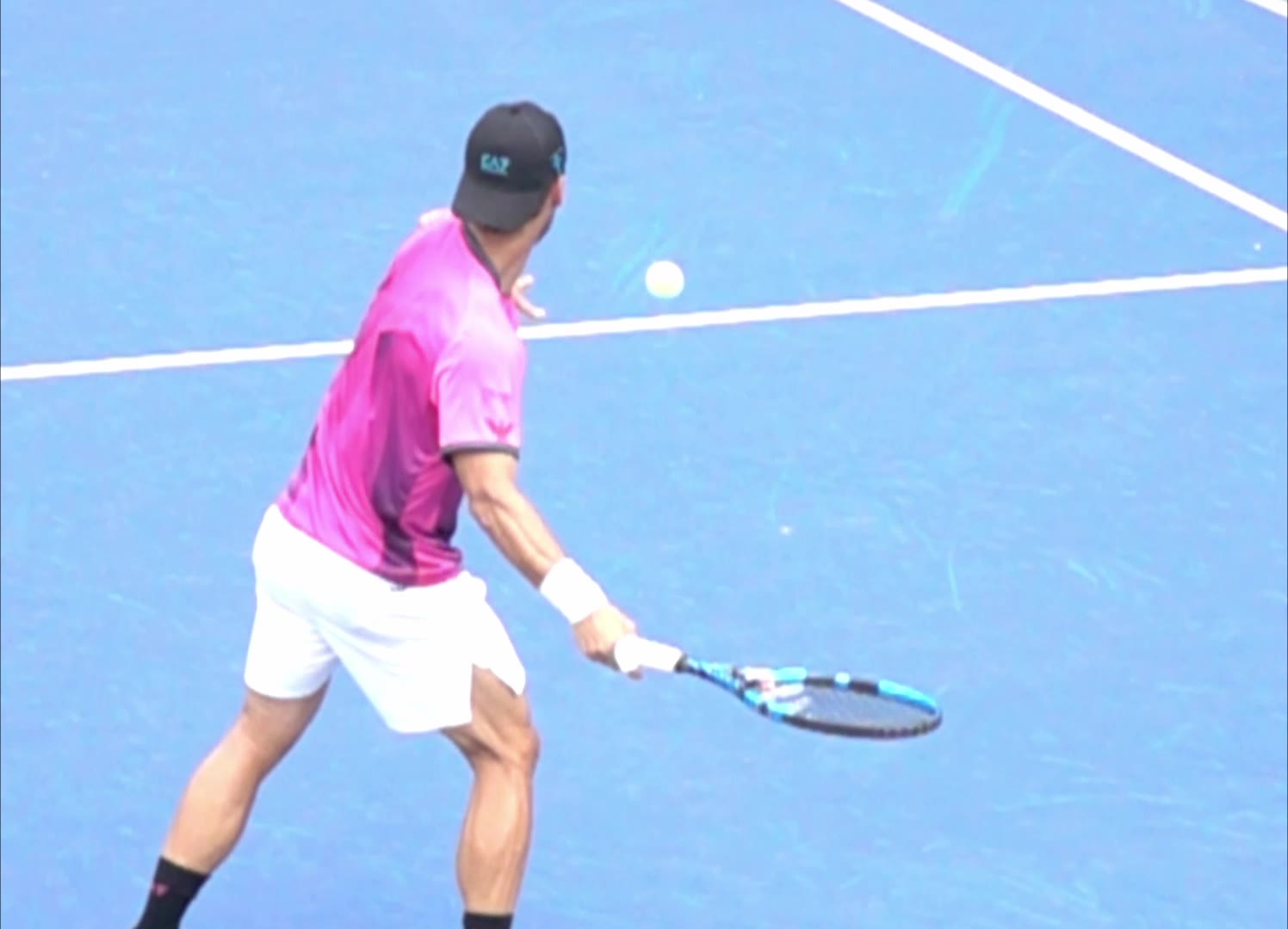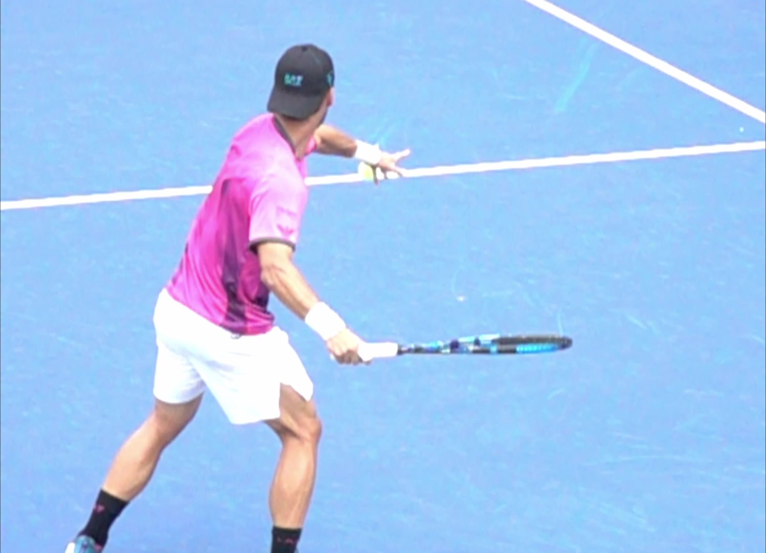 The Giant Slayer: Diego Schwartzman Diego's neutral-court movement during baseline rally patterns, filmed from a side angle. His semi-western forehand grip is evident in the way his wrist stays laid back through the swing, with a distinct snap forward right at contact.