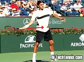 The Forehand: A Spring Event: Part 2 Trey Waltke's forehand drop shot from the middle of the court, filmed from a side angle. His hips stay relatively square to the net while a pronounced double knee bend loads the legs before a subtle upward drive into the ball.