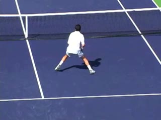 Jeremiah Walsh's movement drill animation on getting the contact point in front of the head, filmed from a side angle. His footwork emphasizes a small split step into compact adjustment steps that position his body so the hitting-side foot can plant in a neutral stance just before contact.