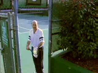 Joe Dinoffer’s throwing motion drill is filmed from a side CourtLevel angle to teach the kinetic chain for future serves and groundstrokes. The side view makes it easy to see a loose wrist with delayed wrist snap, emphasizing how relaxed grip pressure in the hand allows the wrist to whip through at release.