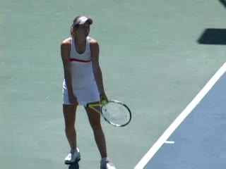 Flash's serve from the center hash, filmed from a side CourtLevel angle. The side view makes the shoulder-over-shoulder action and degree of trunk coil into the trophy position clear, as well as the timing of the torso uncoiling relative to the arm swing.