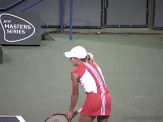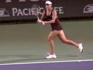 Flash's wide forehand from a neutral position, filmed from a side court-level angle. The side view makes the semi-western grip and the delayed wrist lag before snapping forward into contact especially clear.