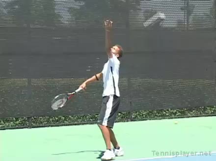 Mac Roy Mac Roy’s groundstroke from the middle of the court, filmed from a rear angle. At contact his racket face is slightly closed with the ball struck around waist height, and the racket head accelerates steeply upward along a modern topspin swing path.