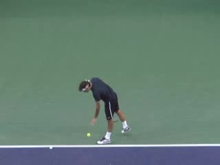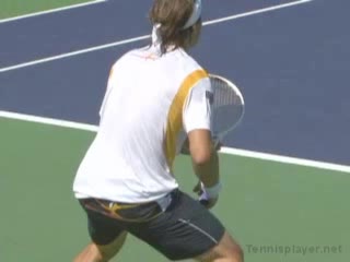 Michael Friedman’s preparation medley from a central court position, filmed from a court-level angle. His recovery emphasizes finishing the follow-through with the racquet up and in front while the non-hitting hand returns quickly to the ready position to set up for the next shot.