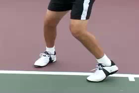 Michael Friedman's forward movement footwork pattern from a central baseline position, filmed from a side angle. His shoulders and trunk stay relatively quiet while the lower body advances, with a slight forward trunk lean that syncs with each step to keep the upper body stacked and ready for the next stroke.