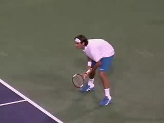 Federer's FH from a central baseline position, filmed from a side CourtLevel angle. His shoulders rotate well past 90 degrees relative to the net on the unit turn, then the trunk uncoils sequentially from hips to shoulders as the racquet accelerates toward contact.