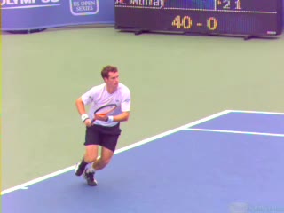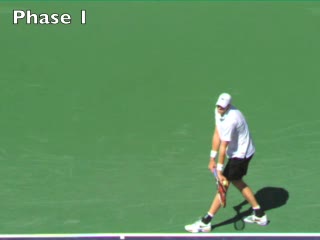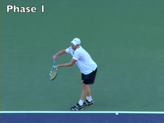 Nick Wheatley's animation on positive momentum strategy from a neutral court position, filmed from a side angle. The side view makes the degree of shoulder turn and the timing of trunk uncoil especially clear as the player transitions weight forward through the shot.