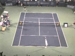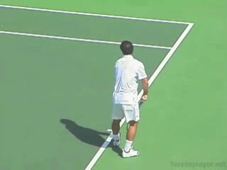 Pete Sampras and Justine Henin’s serve animations from a neutral position, filmed from a side comparison angle. The side view makes it easy to see their loose continental grip and pronounced wrist pronation as the racquet accelerates up through contact.