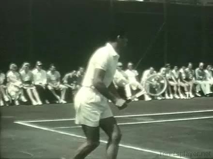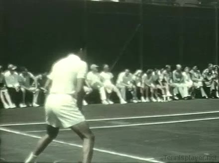 Dominated professional tennis in the 1950s with a powerful serve and fierce competitive spirit. Athletic, aggressive player who excelled at serve-and-volley.